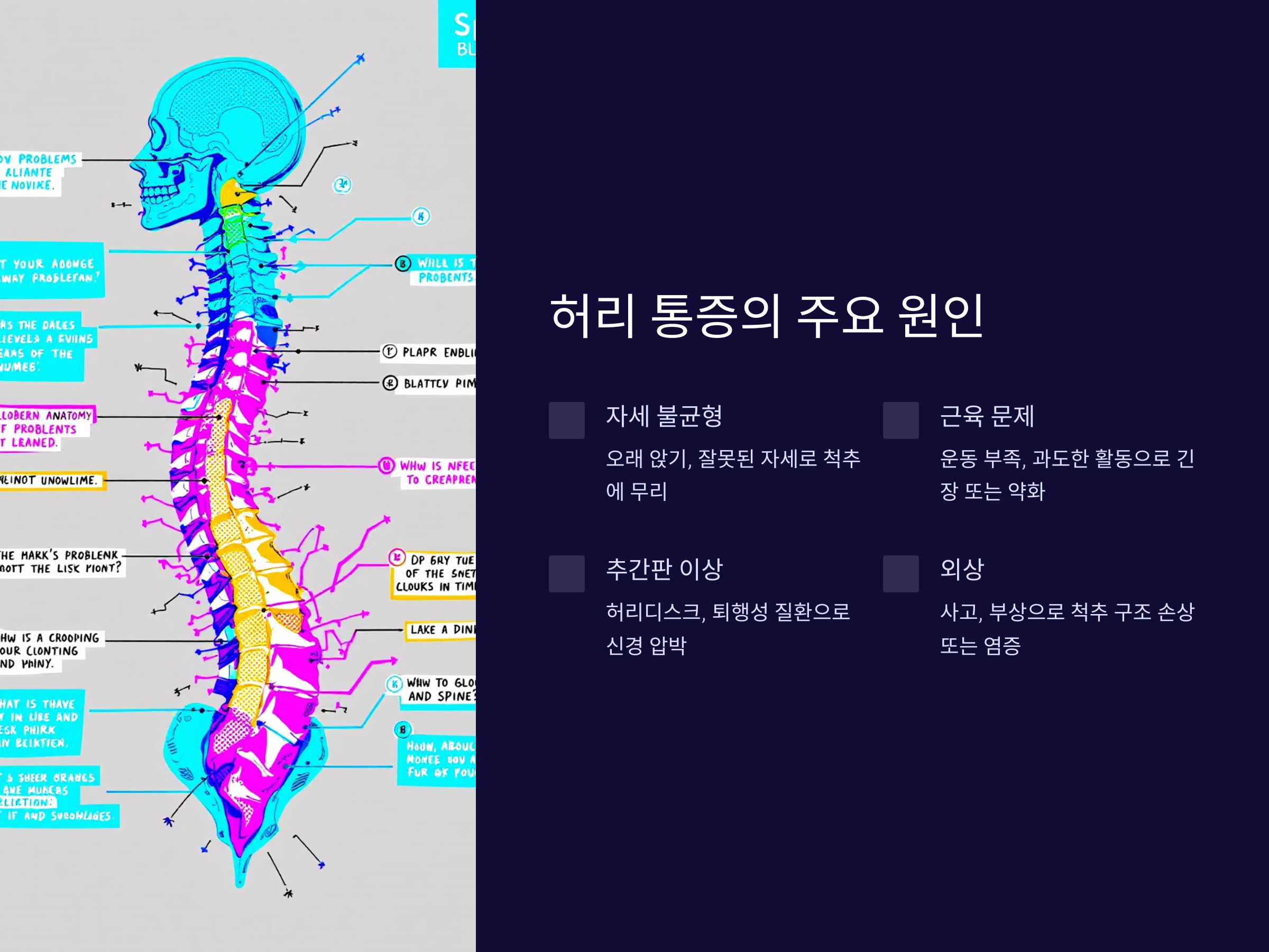 허리 통증은 다양한 요인에 의해 발생하며, 그 원인에 따라 증상과 치료법이 달라집니다.