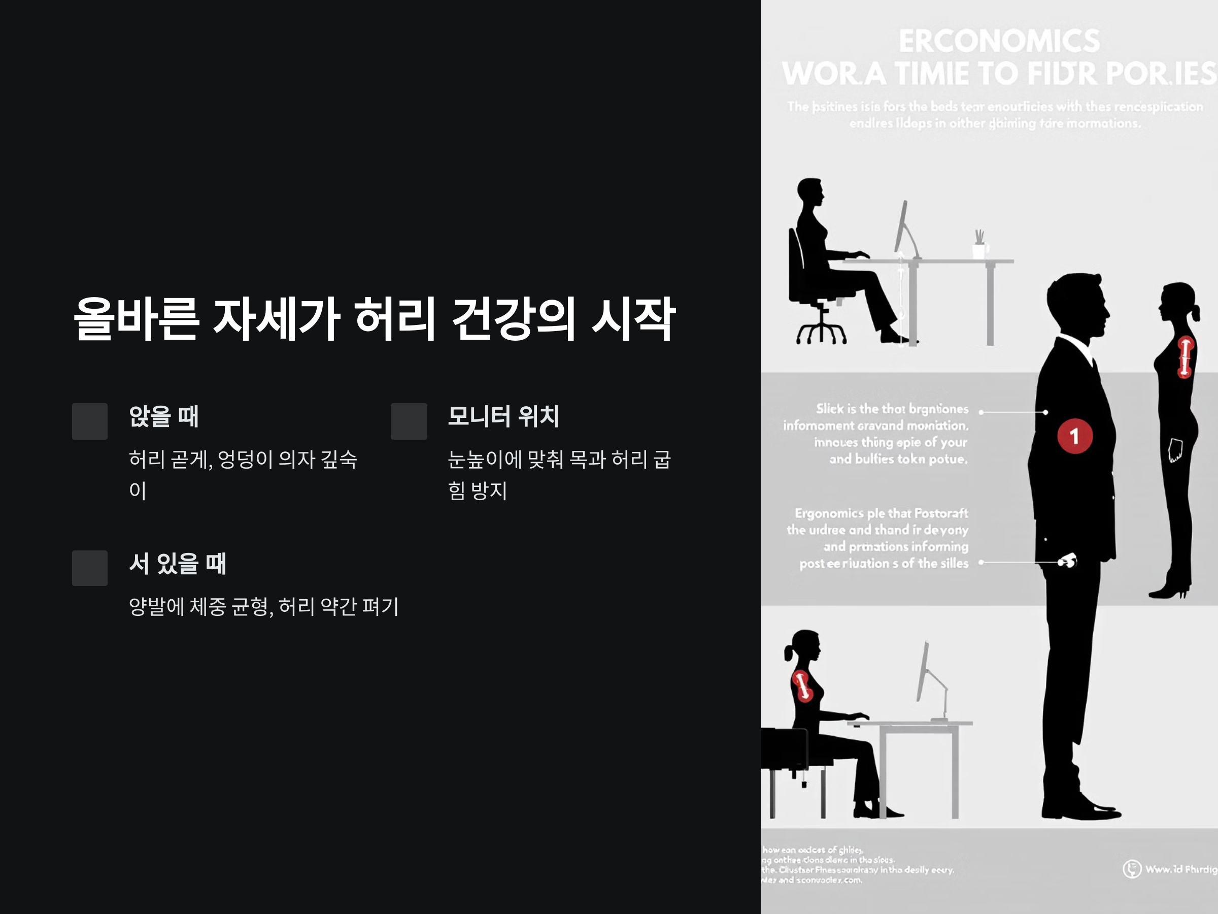 - 자주 걷거나 가벼운 운동을 통해 허리 근육을 활성화합니다.