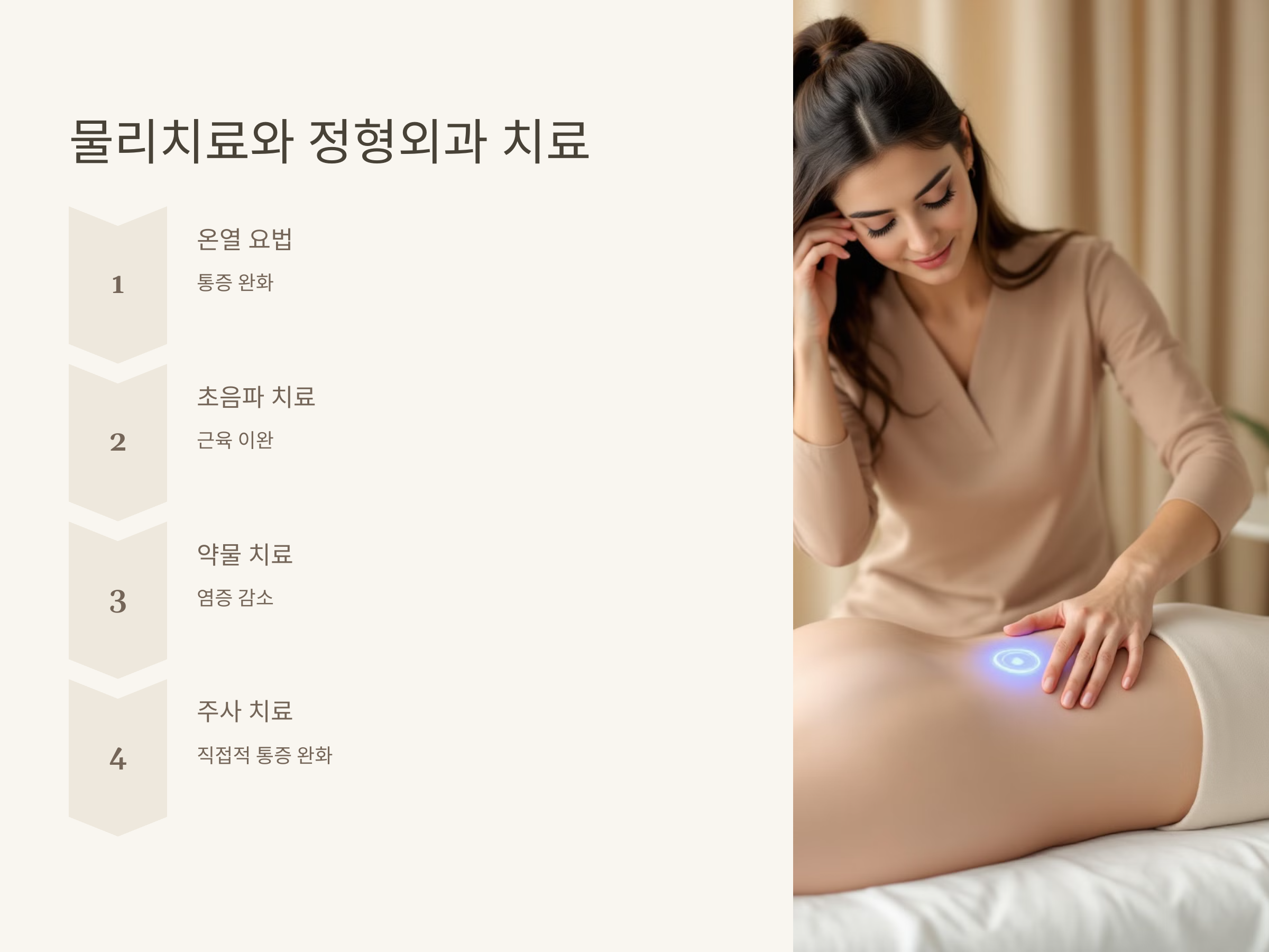 - 온열 요법과 초음파 치료를 통한 통증 완화.