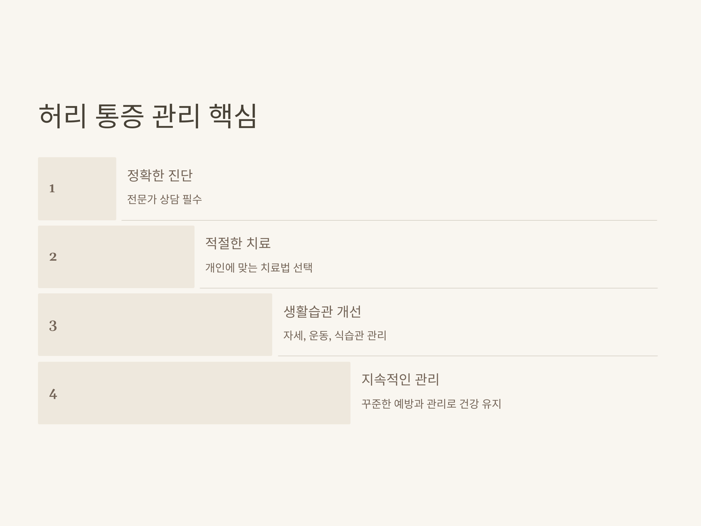 A씨(40세, 사무직)는 6개월간의 허리 통증을 겪은 후, 전문가의 도움을 받아 다음과 같은 운동 치료를 시도했습니다: