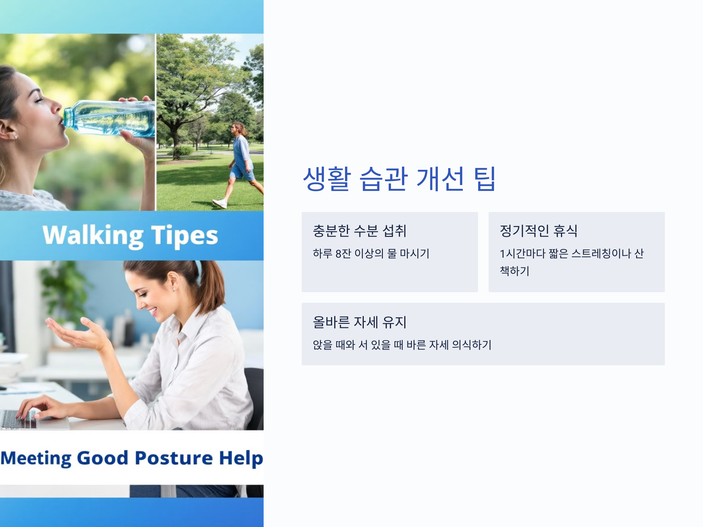 매일 바쁜 일정을 보내고 있다면, 허리 통증 예방을 위한 작은 변화들이 큰 효과를 가져올 수 있습니다. 업무 중에도 쉽게 실천할 수 있는 방법들을 소개합니다.