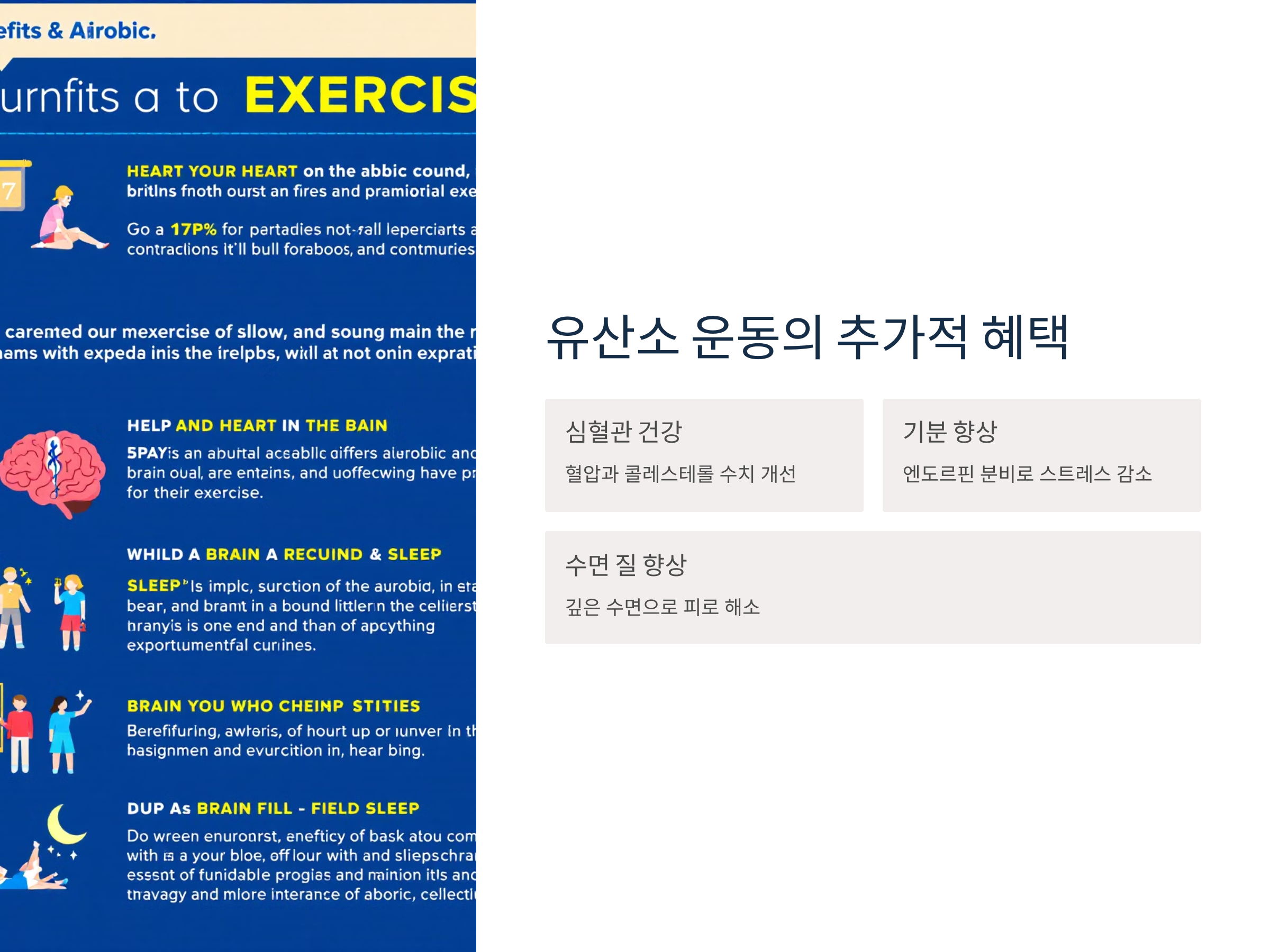 - 수면 질 향상: 규칙적인 운동은 수면의 깊이를 더해 피로를 덜어줍니다.