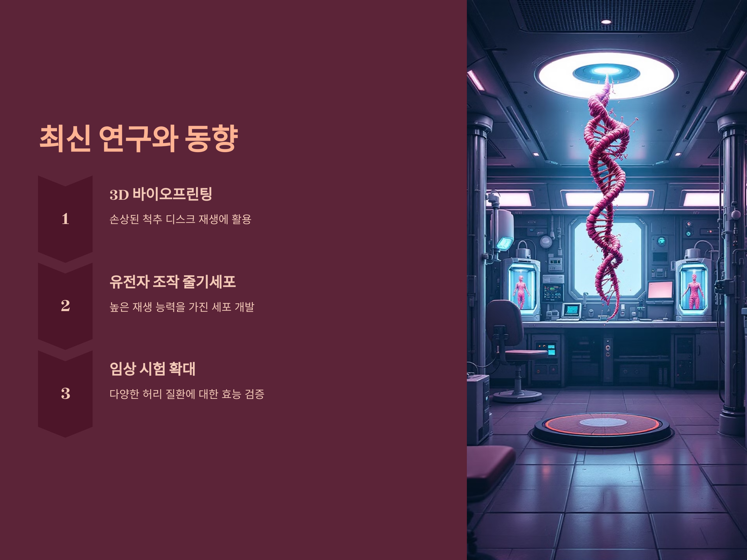 - 임상 시험 확대: 다양한 허리 질환에 대한 줄기세포 치료의 효능을 검증하는 연구가 진행 중입니다.