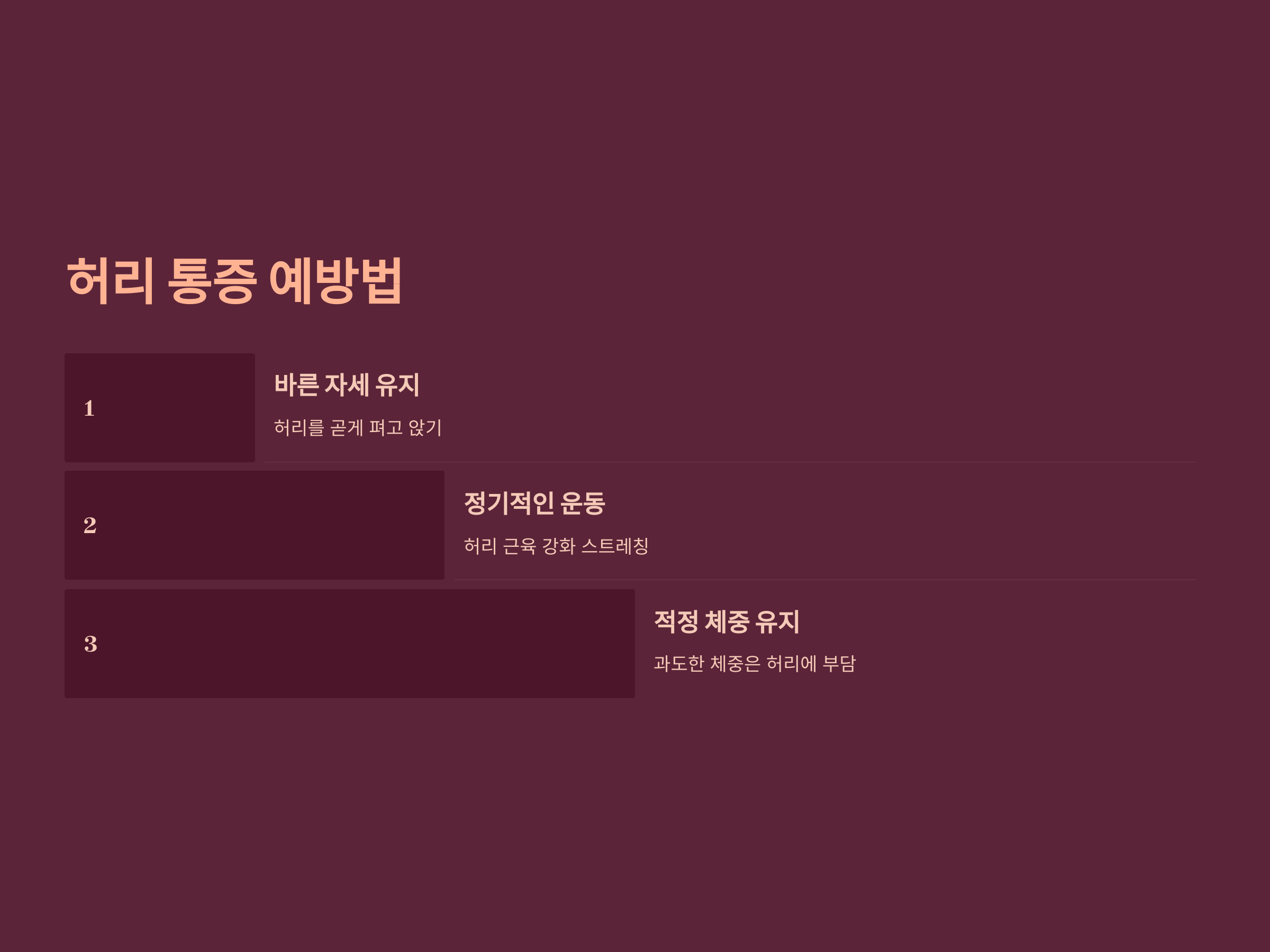 - 정기적인 운동: 허리 근육을 강화하는 스트레칭과 요가를 실천합니다.
