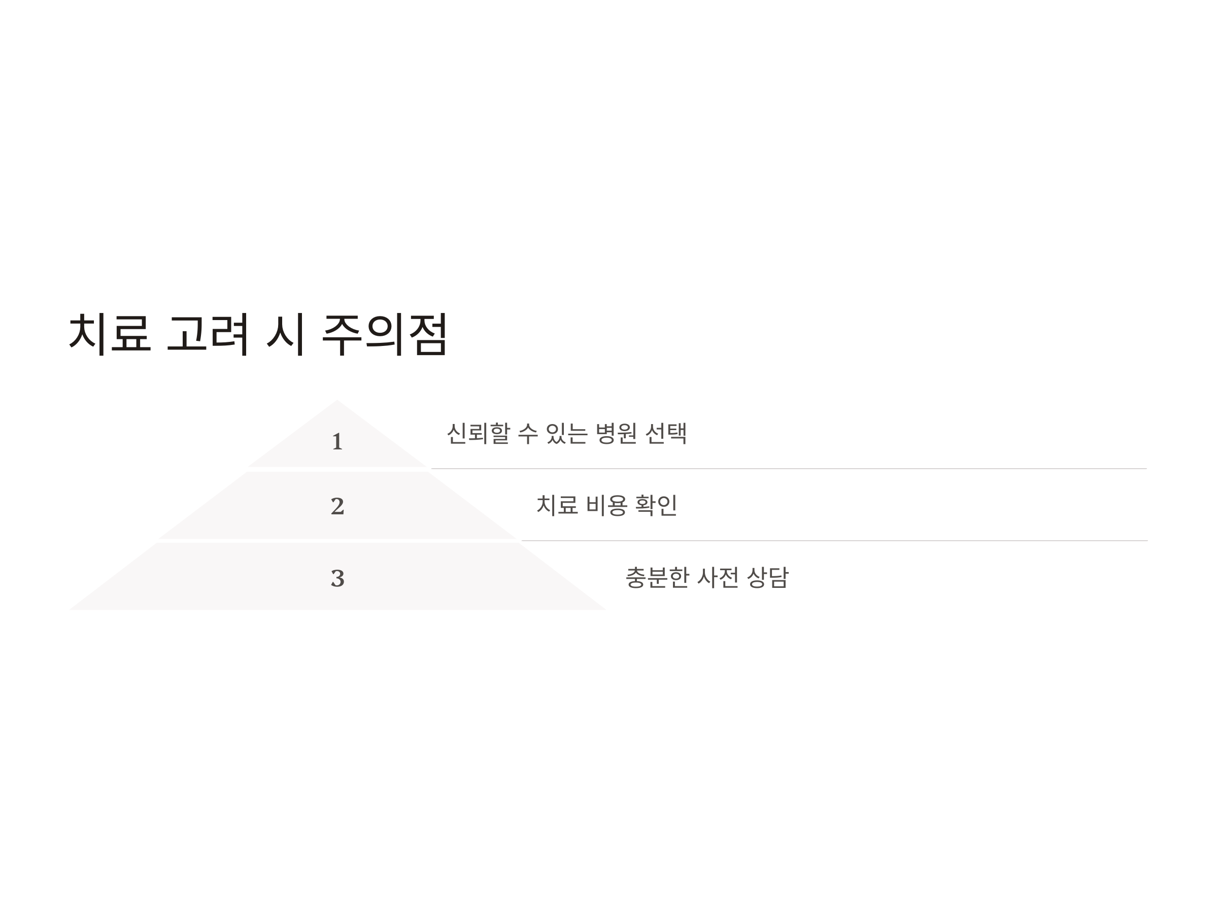 - 치료 전 상담: 본인의 상태에 적합한 치료인지 충분히 상담한 후 결정하세요.