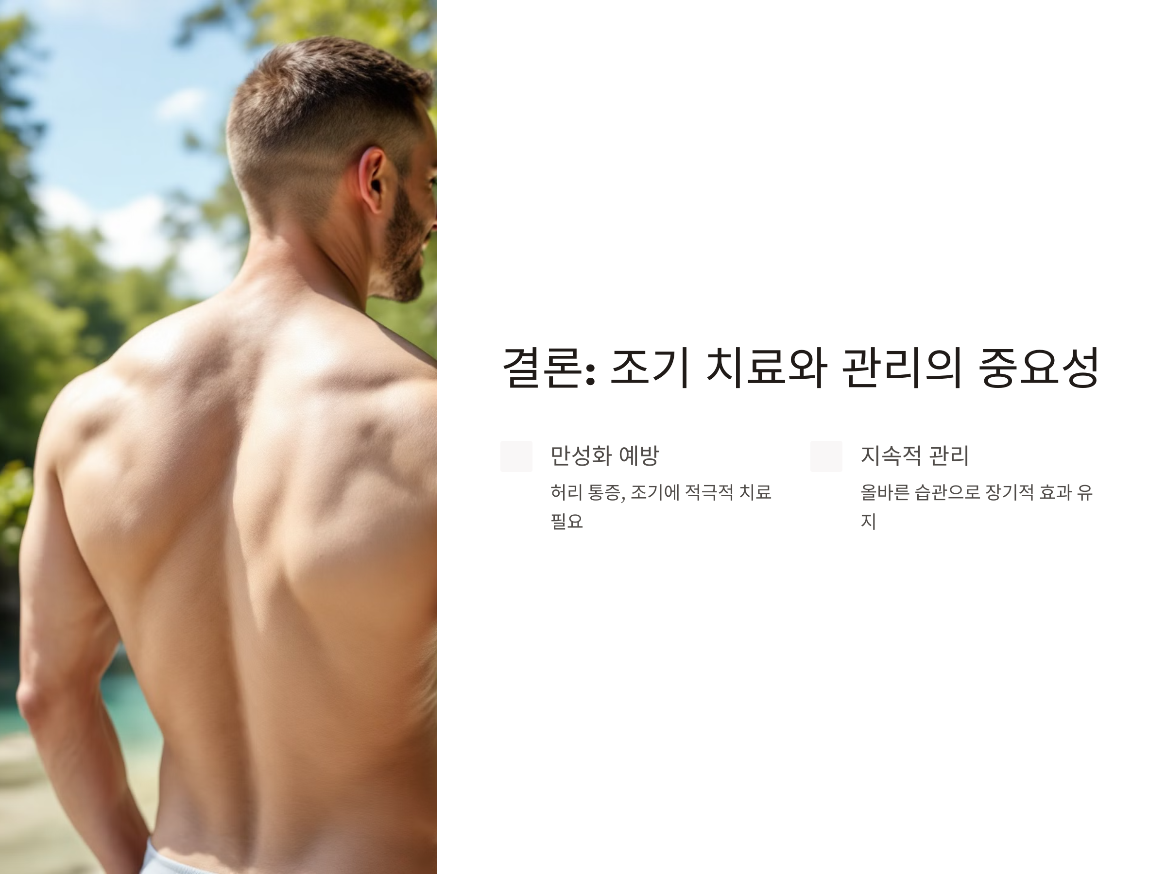 허리 통증은 만성화되기 전에 적극적으로 치료하고 관리하는 것이 가장 중요합니다
