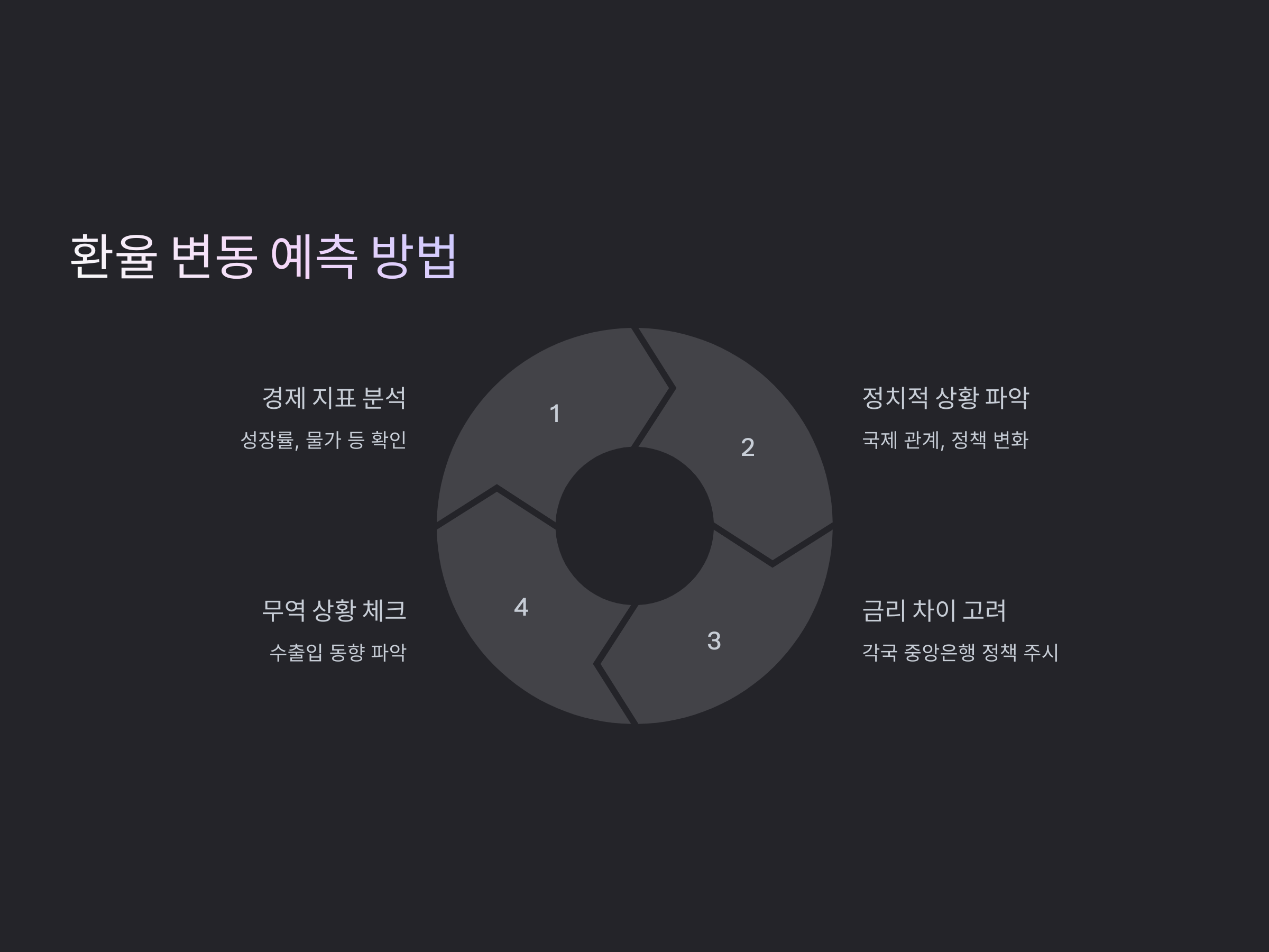 환율 변동을 예측하는 것은 매우 어렵지만, 경제 지표, 정치적 상황, 금리 차이 등을 분석하면 예측에 도움을 줄 수 있습니다. 이를 통해 환율이 상승하거나 하락할 가능성을 미리 알 수 있습니다.