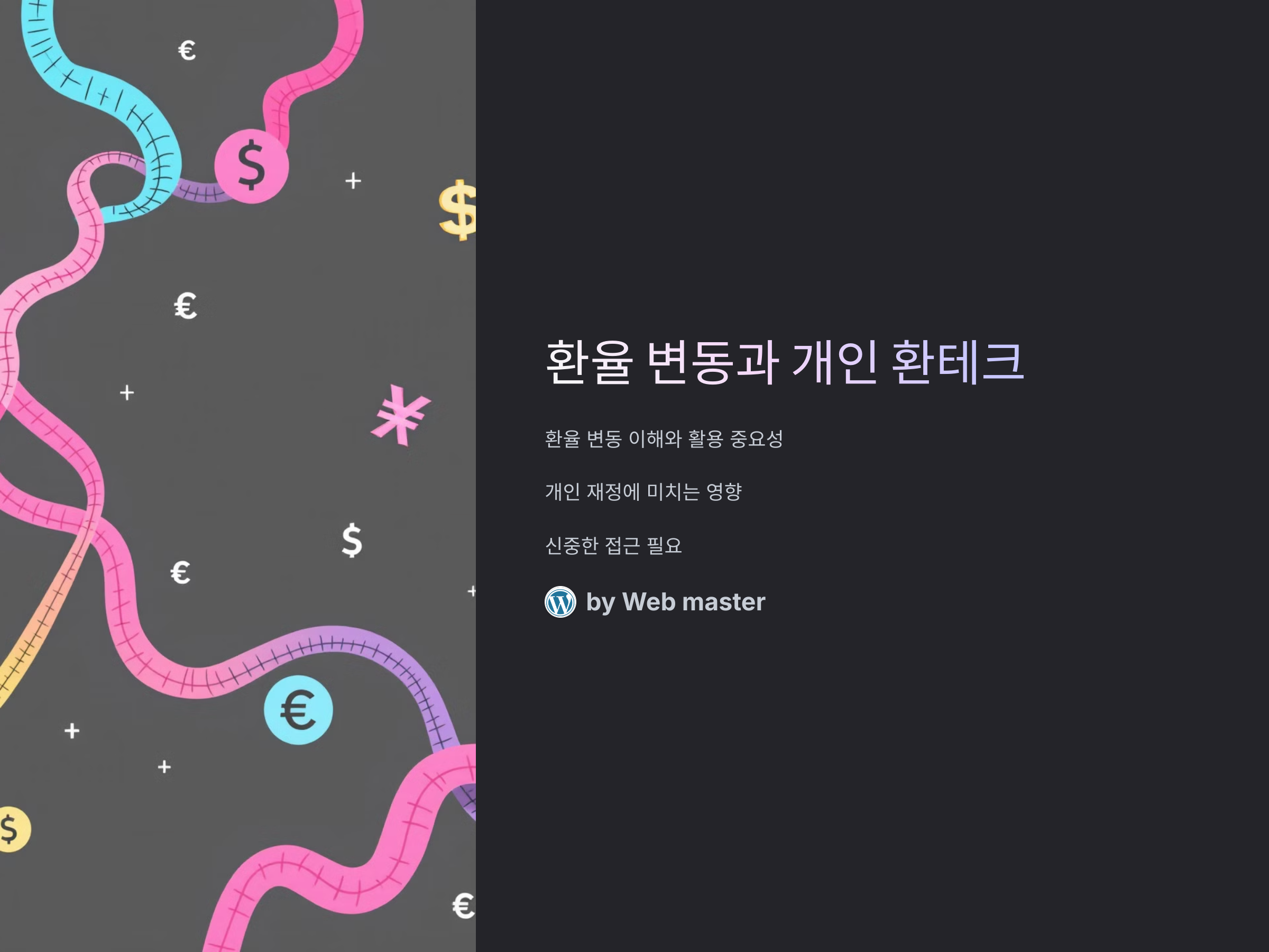 환율 변동을 통한 개인 환테크는 매우 유망한 분야이지만, 그만큼 위험도 존재합니다. 환율 변동성을 잘 파악하고, 이를 적극적으로 활용할 수 있는 전략을 세운다면 상당한 이득을 볼 수 있습니다. 특히, 해외 투자나 환전, 여행 등 여러 방면에서 환율 변동을 활용할 수 있는 기회가 많습니다.