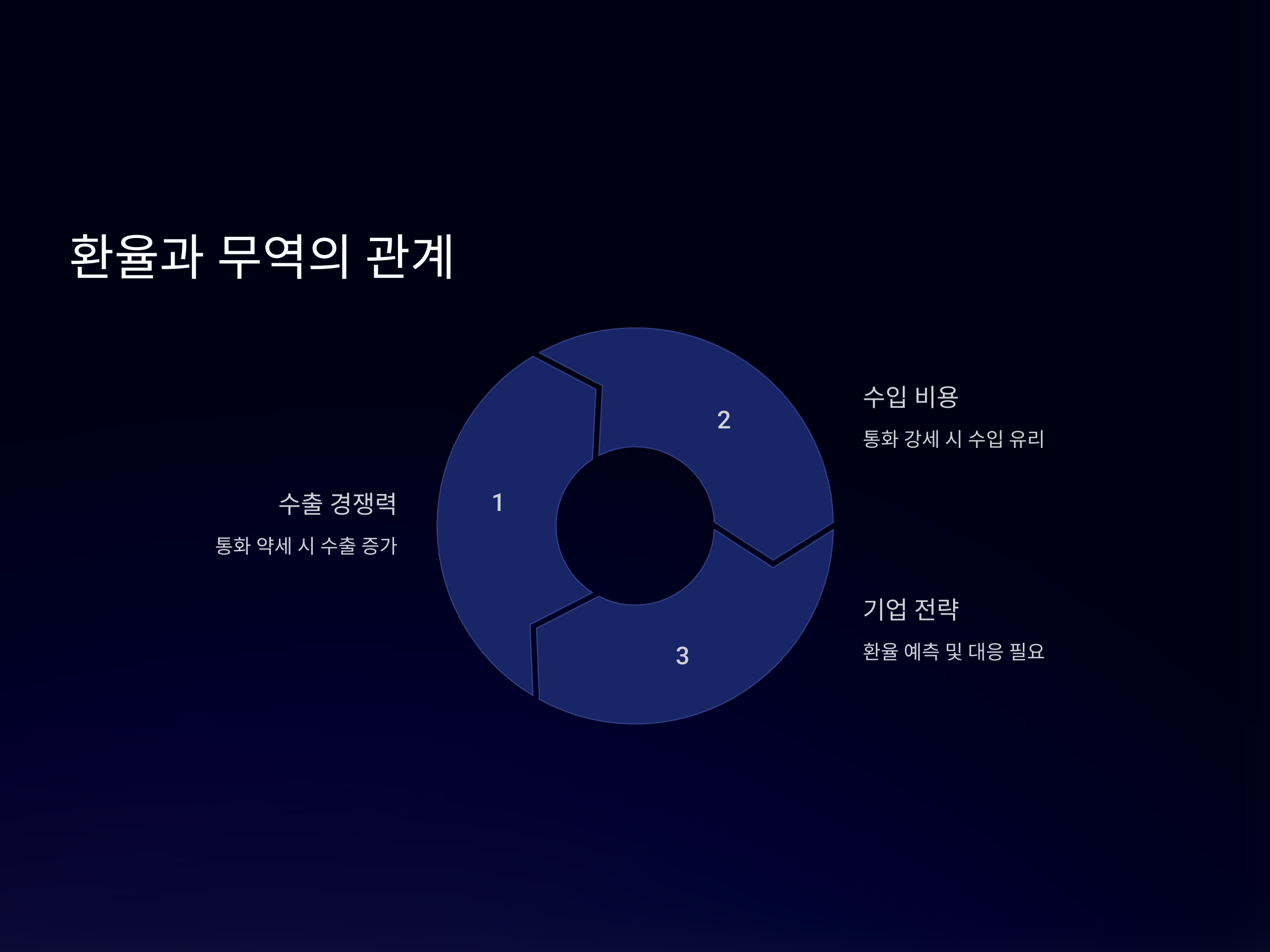 환율은 국가 간 무역에 직접적인 영향을 미칩니다. 예를 들어, 원화가 달러에 비해 가치가 떨어지면, 한국의 수출품은 상대적으로 저렴해져 해외에서 더 많이 팔리게 됩니다. 반대로 원화가 강세를 보이면, 한국의 수출품 가격이 비싸져 경쟁력이 떨어질 수 있습니다.