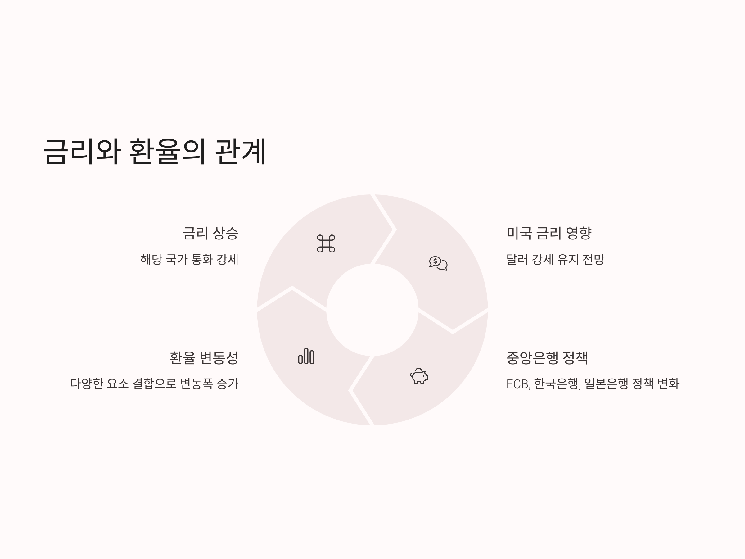 따라서, 2025년에는 달러가 강세를 유지하면서 다른 주요 국가들의 통화는 상대적으로 약세를 보일 것으로 예상됩니다. 그러나 유럽 중앙은행(ECB)과 한국은행, 일본은행 등 주요 중앙은행들의 정책 완화 가능성도 여전히 존재합니다. 이러한 요소들이 결합되어 환율 변동의 폭이 클 수 있음을 예고하고 있습니다.