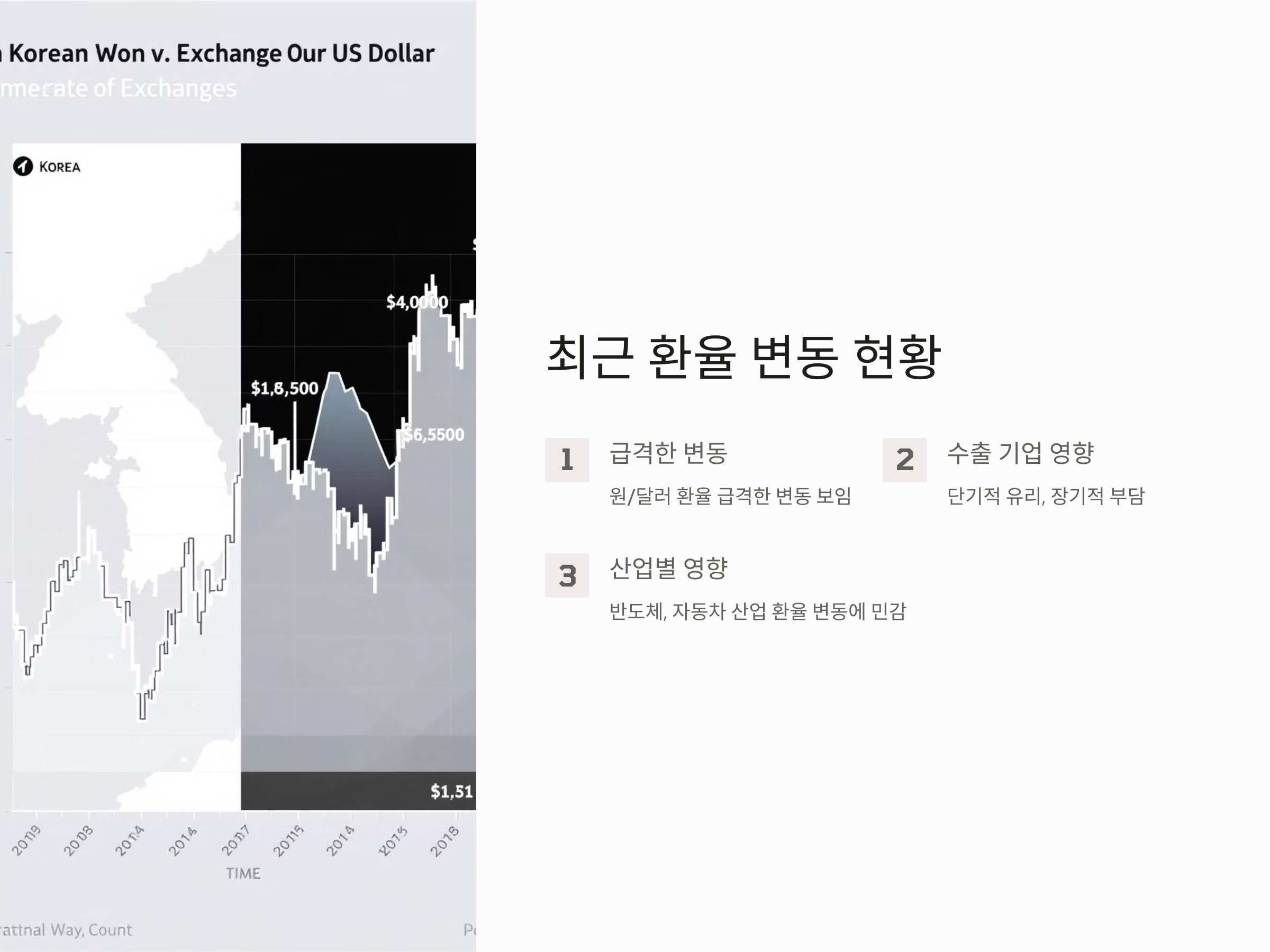 최근 원/달러 환율은 급격한 변동을 보이고 있습니다. citeturn0search0 이러한 환율 상승은 수출 기업에는 단기적으로 유리할 수 있지만, 원자재 수입 비용 증가로 인해 장기적으로는 부담이 될 수 있습니다. 특히, 반도체와 자동차 산업은 환율 변동에 민감하며, 투자 비용 증가와 수익성 악화가 우려됩니다. citeturn0search2