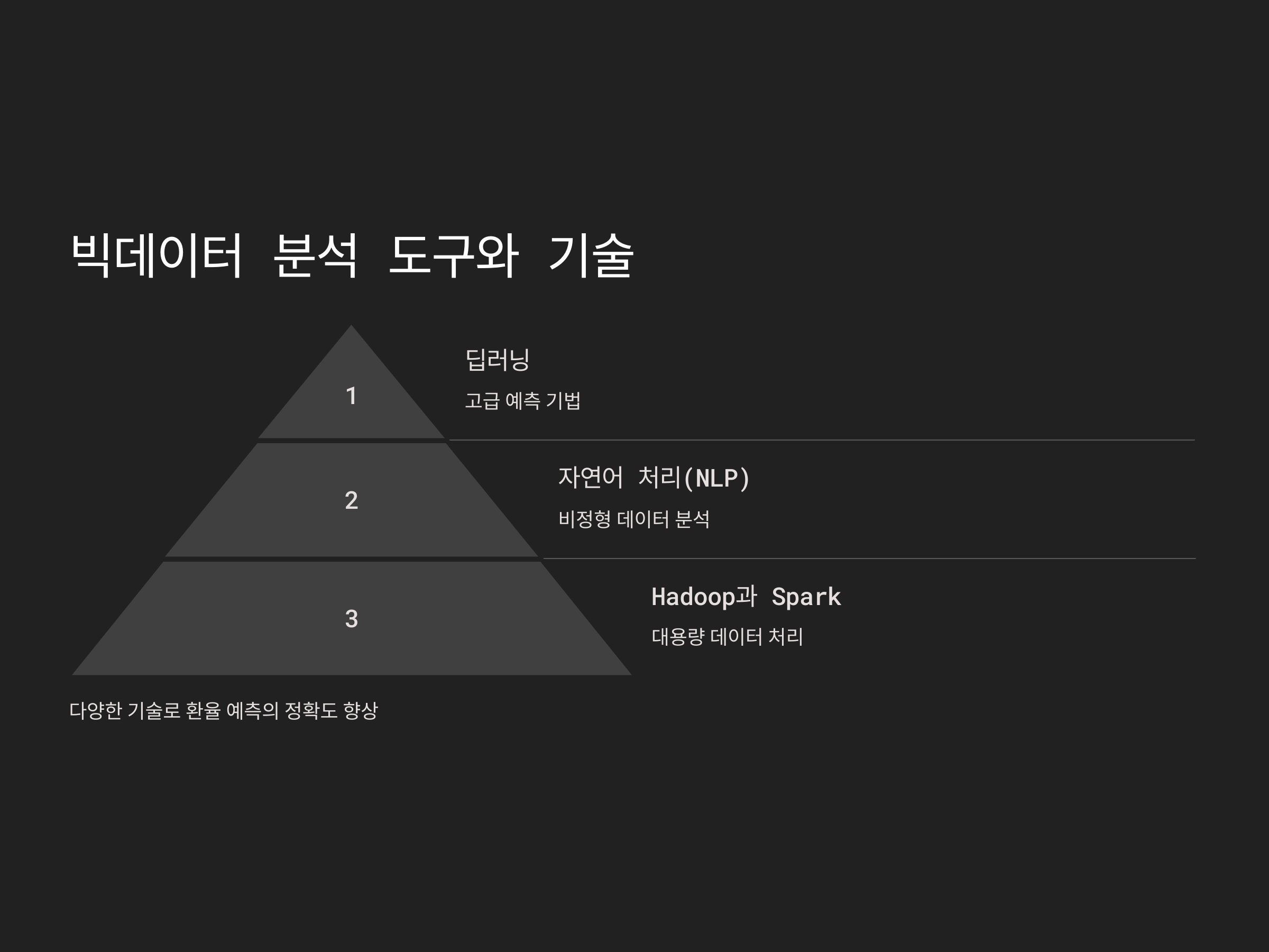 빅데이터는 환율 예측에 큰 역할을 할 수 있습니다. 전통적인 경제학적 모델은 여러 가지 변수들을 고려해야 하기 때문에 예측의 정확성이 낮을 수밖에 없었습니다. 그러나 빅데이터를 활용하면 다양한 비정형 데이터를 실시간으로 분석하여 훨씬 더 정확한 예측을 할 수 있습니다.