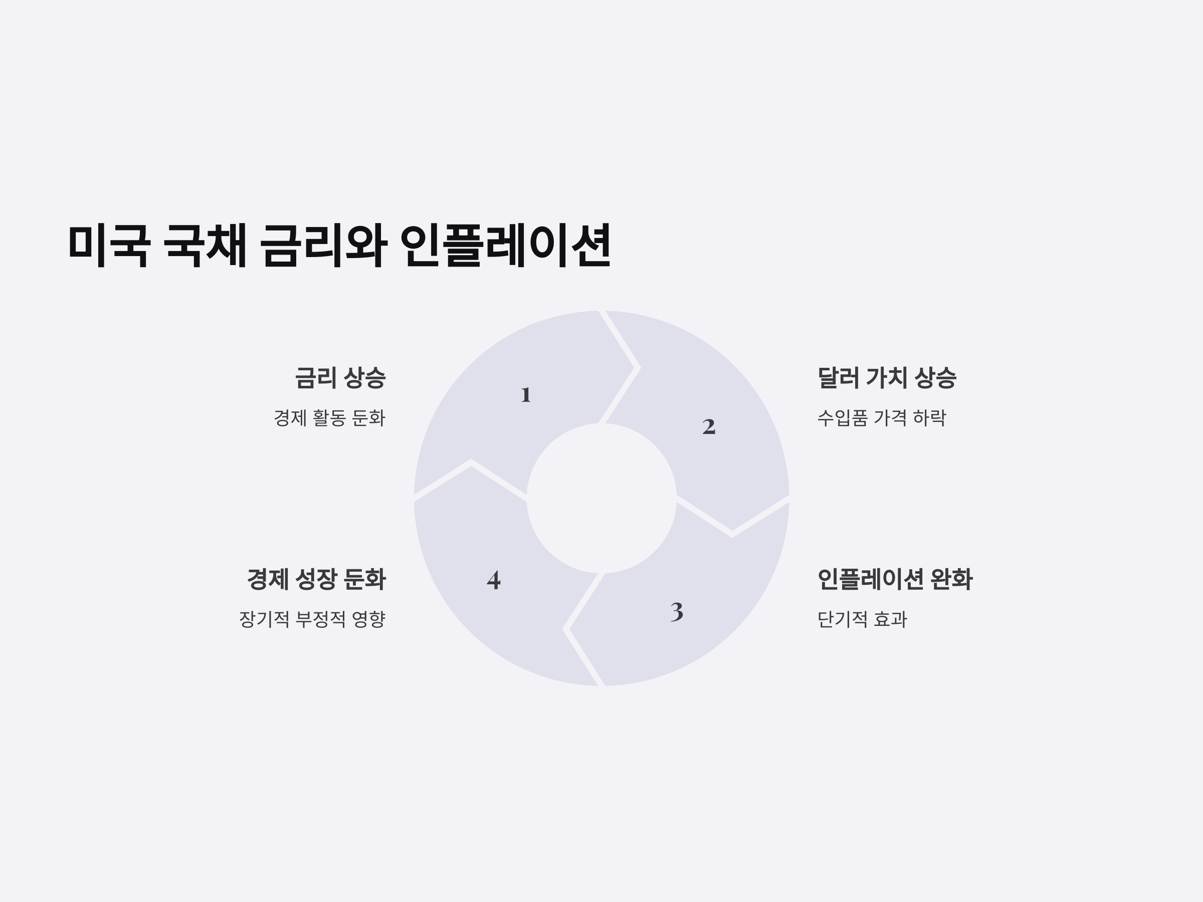 미국의 국채 금리는 단순히 금리 변동을 넘어, 인플레이션과의 관계에서도 중요한 역할을 합니다. 금리가 상승하면, 대체로 경제 활동이 둔화되며, 이는 인플레이션을 억제하는 효과를 가져옵니다. 그러나 이러한 정책이 환율에 미치는 영향은 복잡합니다. 금리가 상승하면 달러 가치가 상승하고, 이는 수입품의 가격을 낮추어 일시적으로 인플레이션을 완화시킬 수 있습니다.