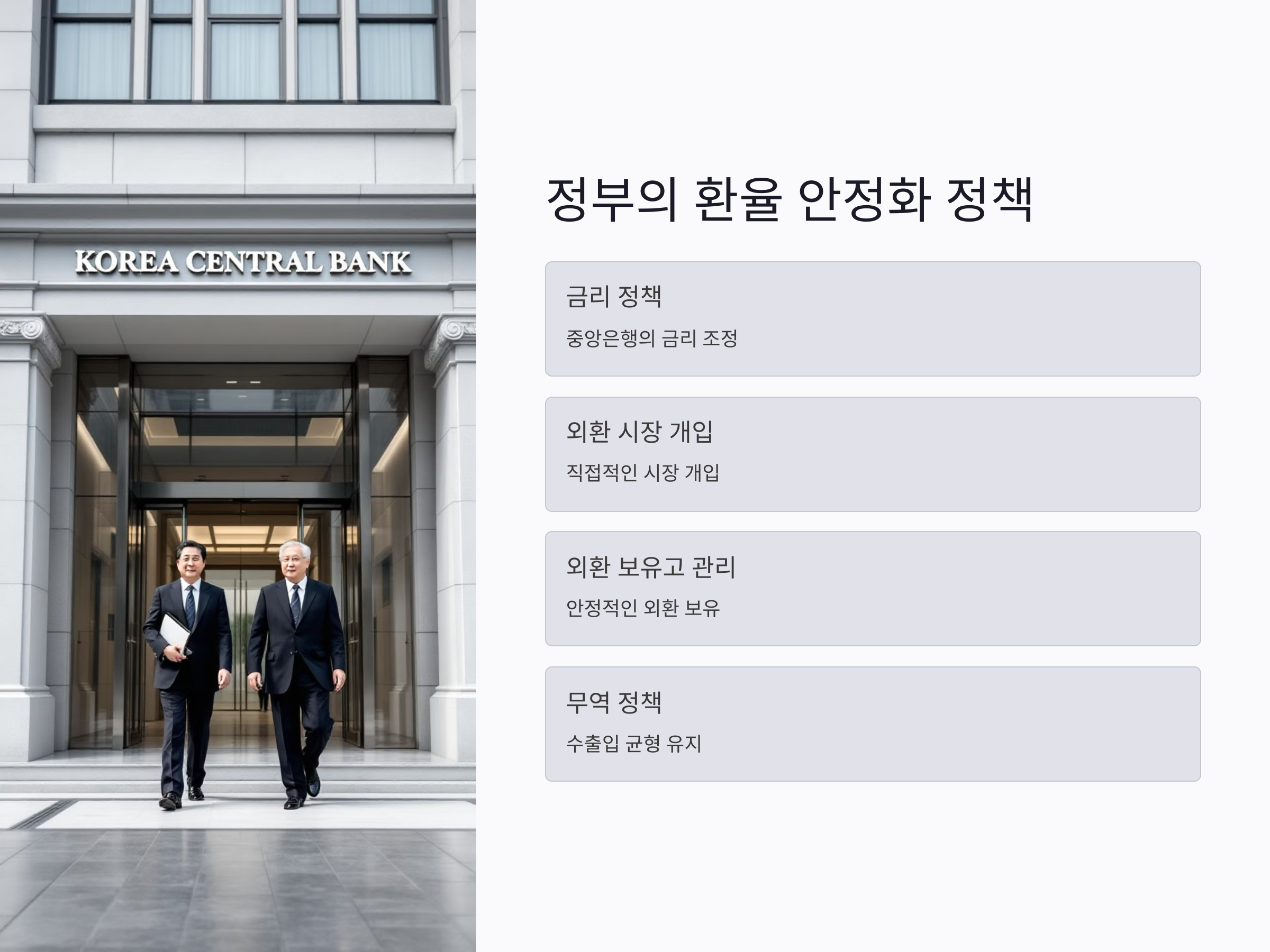 정부 차원에서는 환율 안정화를 위한 정책을 적극적으로 시행해야 합니다. 중앙은행은 금리 정책을 통해 환율을 안정시킬 수 있으며, 필요시 외환 시장에서 직접 개입하기도 합니다. 또한, 환율 변동성이 크지 않도록 외환 보유고를 관리하고, 무역과 관련된 정책을 적극적으로 추진해야 합니다.