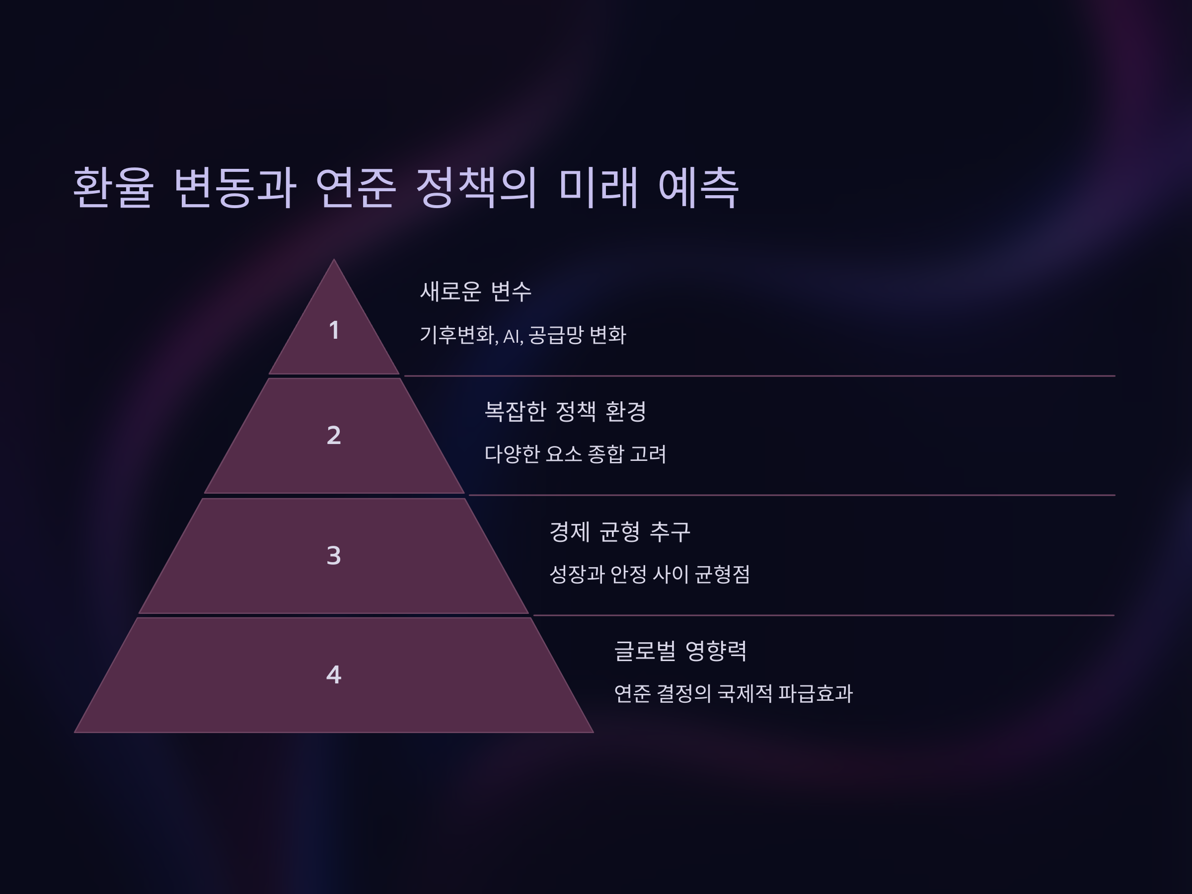 또한, 글로벌 경제가 변화하면서 연준의 정책도 더 복잡해질 수 있습니다. 기후 변화, AI 기술 발전, 글로벌 공급망 변화 등 다양한 요소들이 경제에 영향을 미치고 있습니다. 연준은 이러한 요소들을 종합적으로 고려하여 금리 정책을 조정할 것이며, 이는 환율과 글로벌 경제에 깊은 영향을 미칠 것입니다.