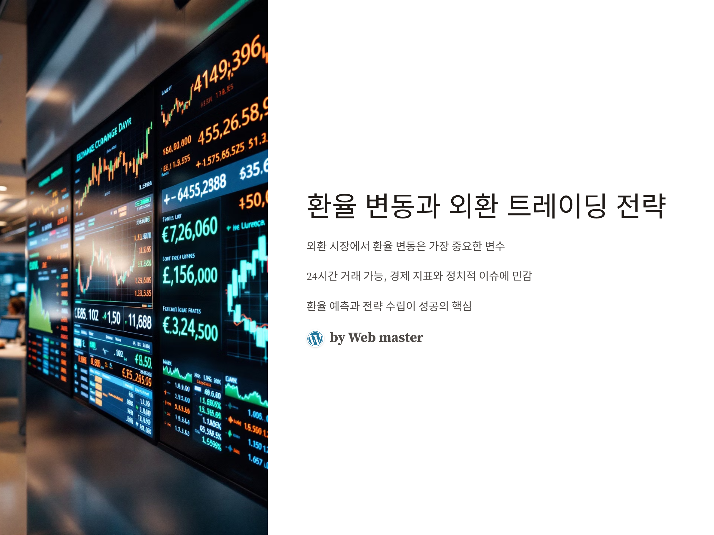 환율 변동은 외환 시장에서 가장 중요한 변수 중 하나입니다. 환율의 변화는 기업과 국가의 경제뿐만 아니라, 개인 트레이더의 투자 성과에도 큰 영향을 미칩니다. 특히 외환 트레이딩은 다른 금융 시장과는 달리 24시간 거래가 가능하고, 다양한 경제 지표와 정치적 이슈에 민감하게 반응합니다. 이에 따라 환율 변동을 예측하고, 그에 맞는 트레이딩 전략을 수립하는 것은 외환 시장에서 성공하기 위한 핵심 요소입니다.