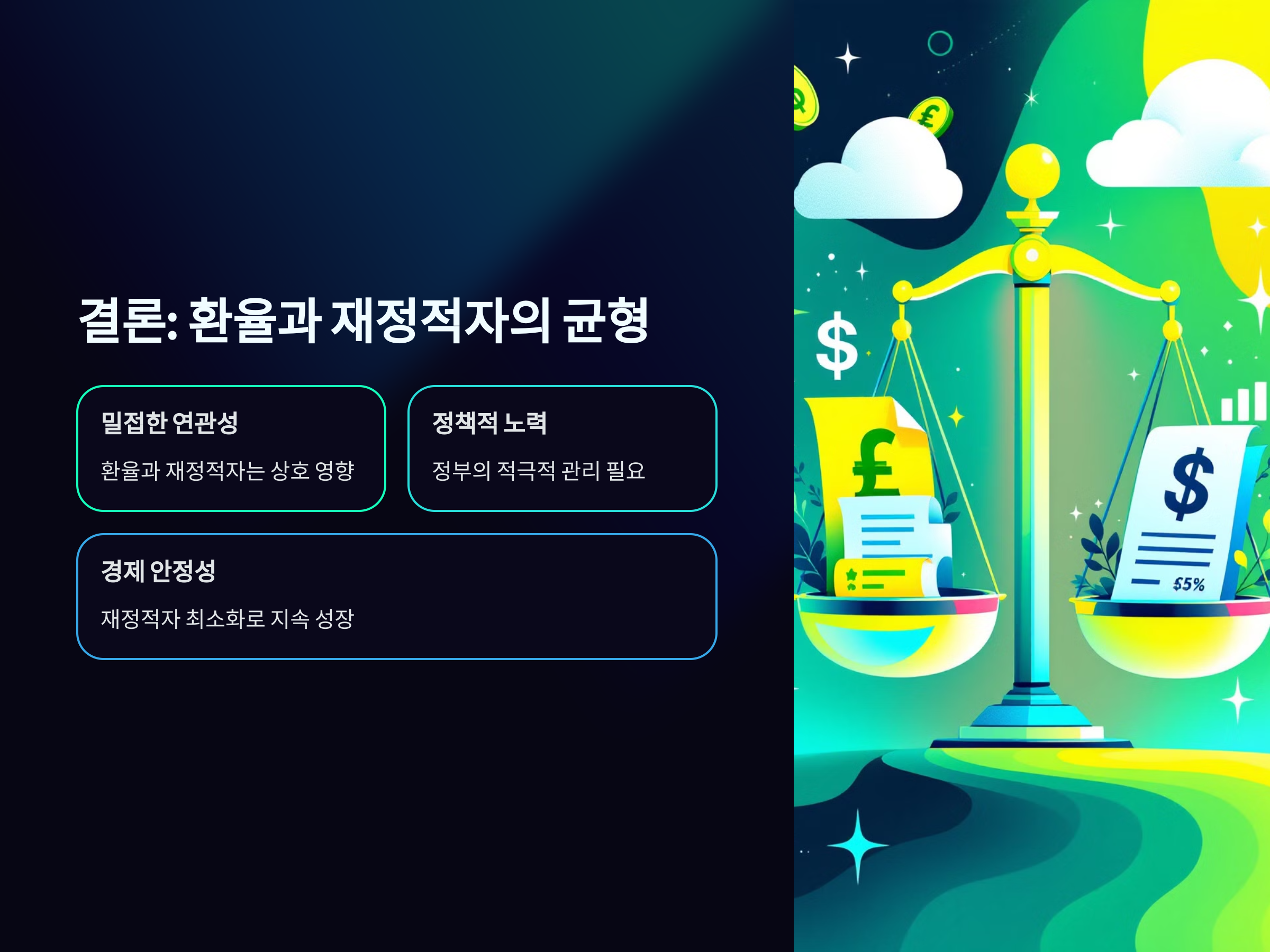 특히, 정부가 재정적자를 관리하기 위해서는 환율 변동에 따른 외환보유고의 변화를 면밀히 분석하고, 이를 바탕으로 적절한 환율 정책을 수립해야 합니다. 이를 통해 환율 안정화가 이루어지면, 국가의 경제 전반이 안정되고 재정적자도 관리할 수 있는 기반이 마련될 수 있습니다.