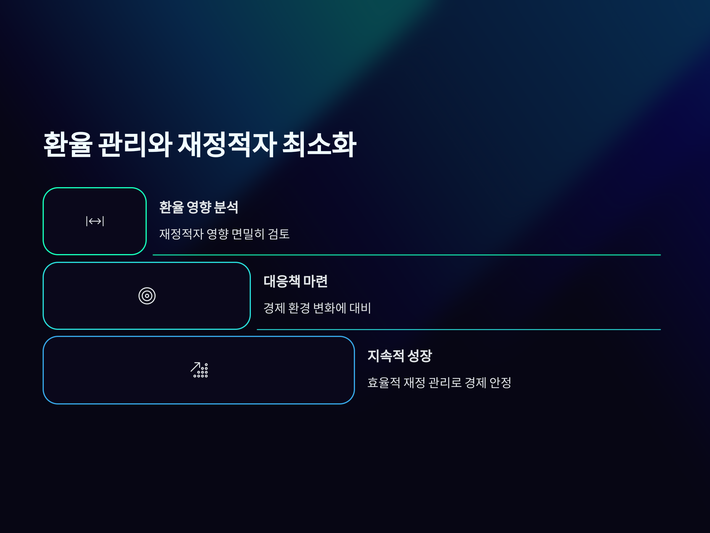 재정정책은 환율 변동에 대한 국가의 대응 방식에 중요한 영향을 미칩니다. 환율 변동으로 인한 재정적자 확대를 방지하기 위해서는 정부가 적극적인 재정정책을 추진해야 합니다. 예를 들어, 세수 증대를 위한 경제 성장 촉진 정책이나, 불필요한 지출을 줄이는 예산 절감 정책이 필요할 수 있습니다. 또한, 중앙은행은 통화정책을 통해 환율 안정화를 유도할 수 있습니다. 환율이 급격히 변동하면, 외환시장에서의 불확실성을 증가시키고, 국가 경제에 악영향을 미치게 되므로, 이를 방지하기 위한 정책적 노력이 필요합니다.