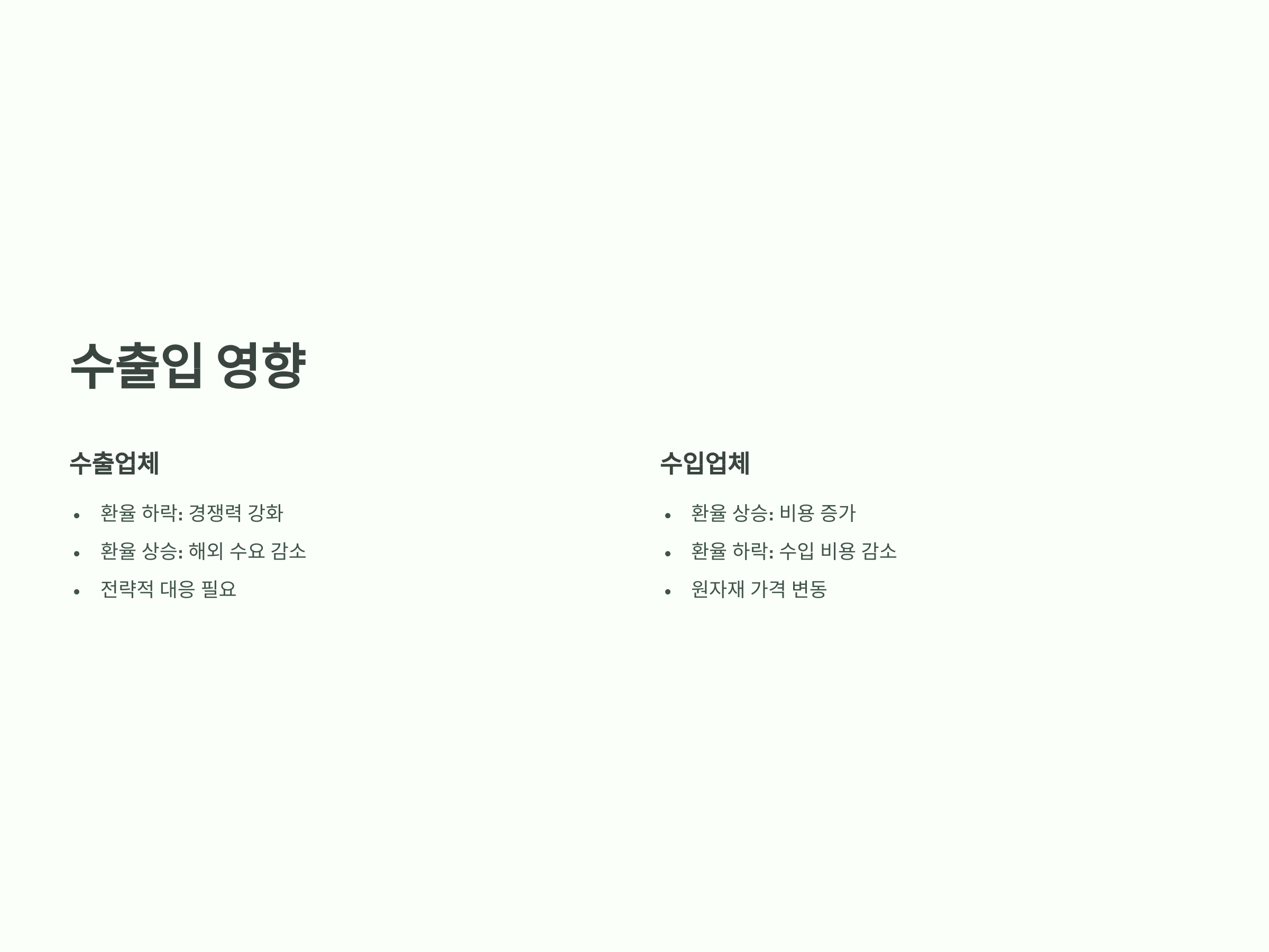 환율 변동에 따른 수출입 영향