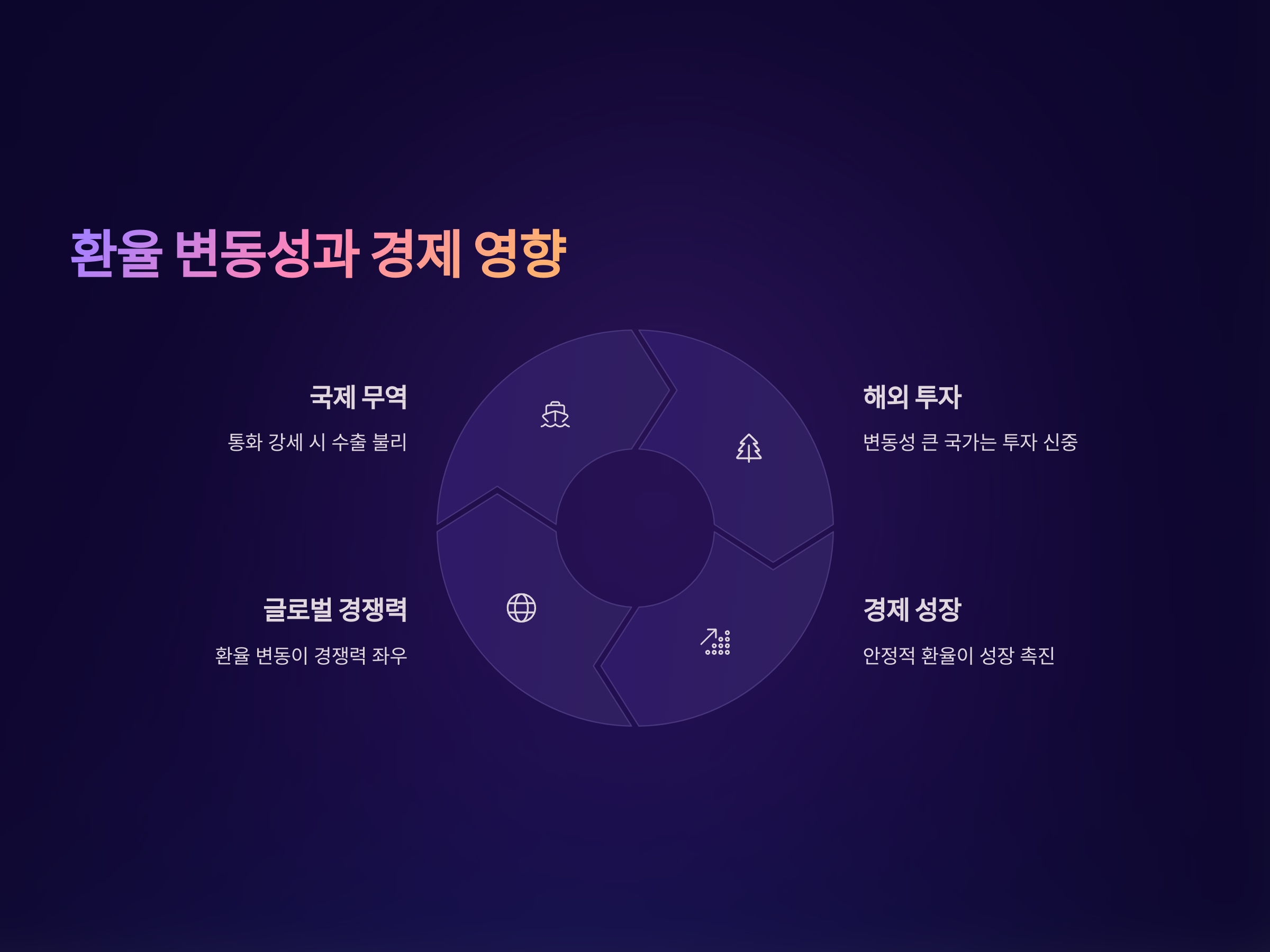 둘째, 환율 변동은 해외 투자자들의 투자 결정을 좌우합니다. 환율 변동성이 큰 국가에서는 투자자들이 신중하게 투자 결정을 내리게 되며, 이는 그 국가의 자본 유입에 영향을 미칩니다. 환율 안정성이 높은 국가가 더 많은 외국인 투자를 끌어들일 수 있습니다.
