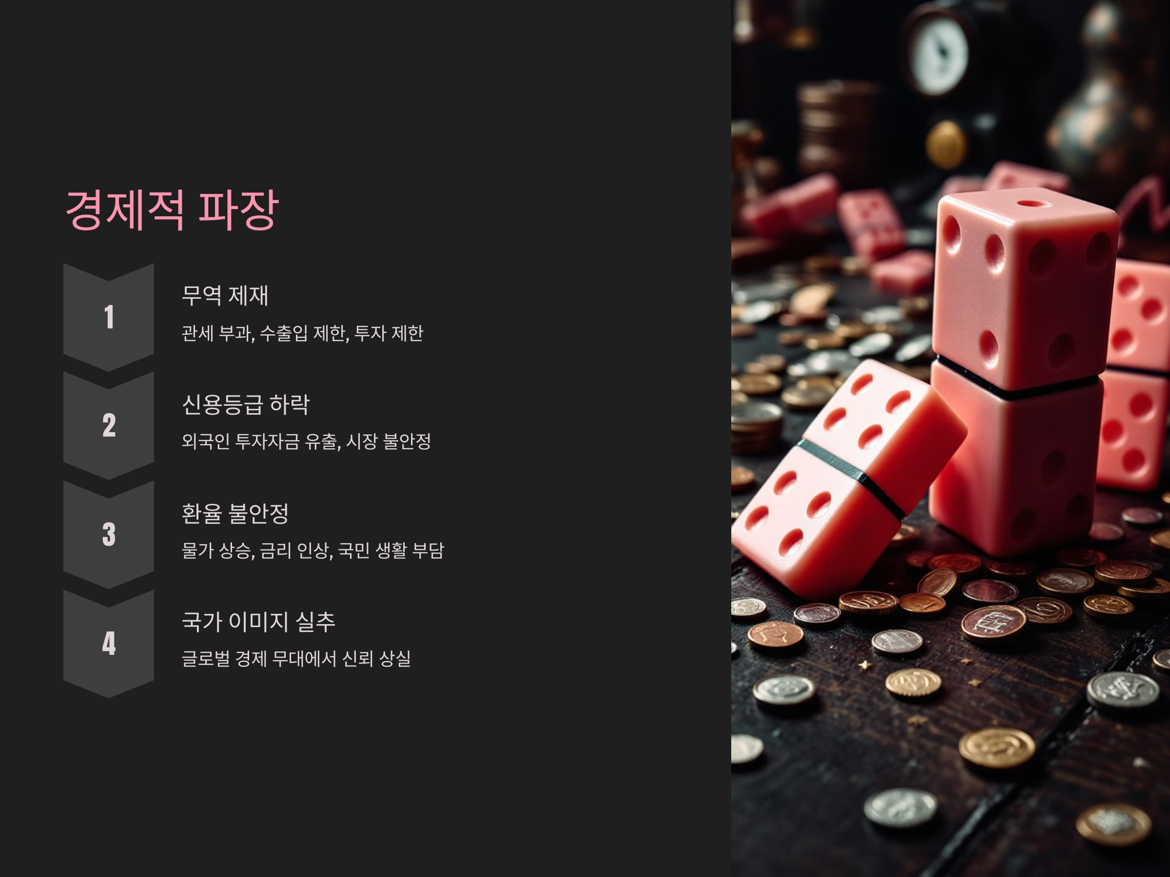 환율 조작국으로 지정되면 가장 먼저 무역 제재가 가해질 수 있습니다. 미국은 환율 조작국에 대해 관세 부과, 수출입 제한, 투자 제한 등의 경제적 압박을 행사할 수 있으며, 이는 해당 국가의 수출 의존형 산업에 직격탄이 됩니다. 또한, 국제 신용평가사들이 국가 신용등급을 하향 조정할 가능성도 커지면서 외국인 투자자금이 빠져나가고, 주식 및 채권 시장이 불안정해집니다. 이러한 악순환은 환율 불안정을 심화시키고, 국내 물가 상승과 금리 인상으로 이어져 결국 국민 생활에도 부담을 주게 됩니다. 더불어 환율 조작국 지정은 해당 국가의 이미지 실추로 글로벌 경제 무대에서 신뢰를 잃게 되어 장기적인 경제 성장에도 부정적인 영향을 미칠 수 있습니다.