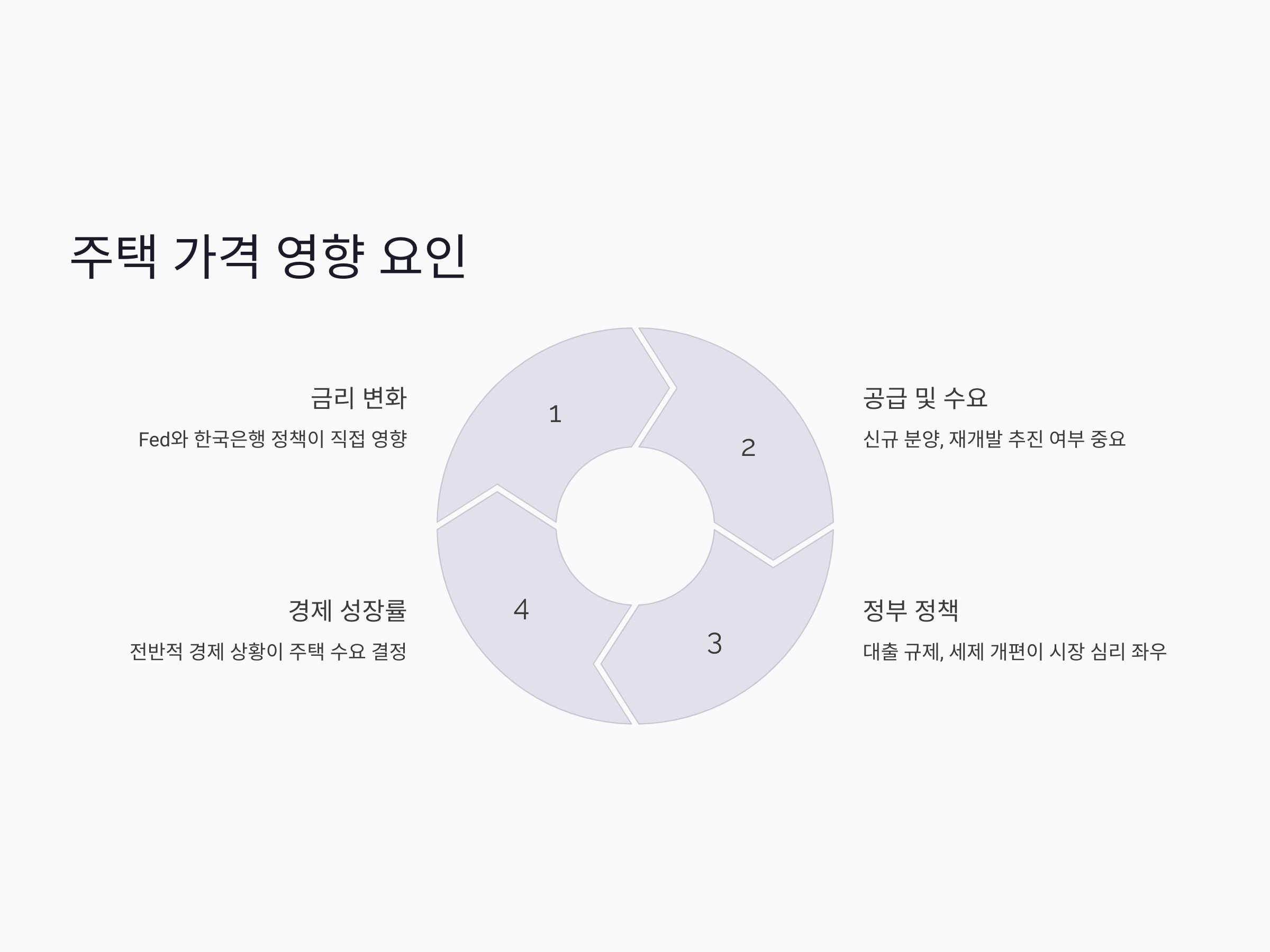 주택 가격 변동에는 다양한 요인이 영향을 미칩니다. 특히 다음과 같은 변수들이 향후 시장 방향을 결정하는 중요한 요소로 작용할 것입니다.