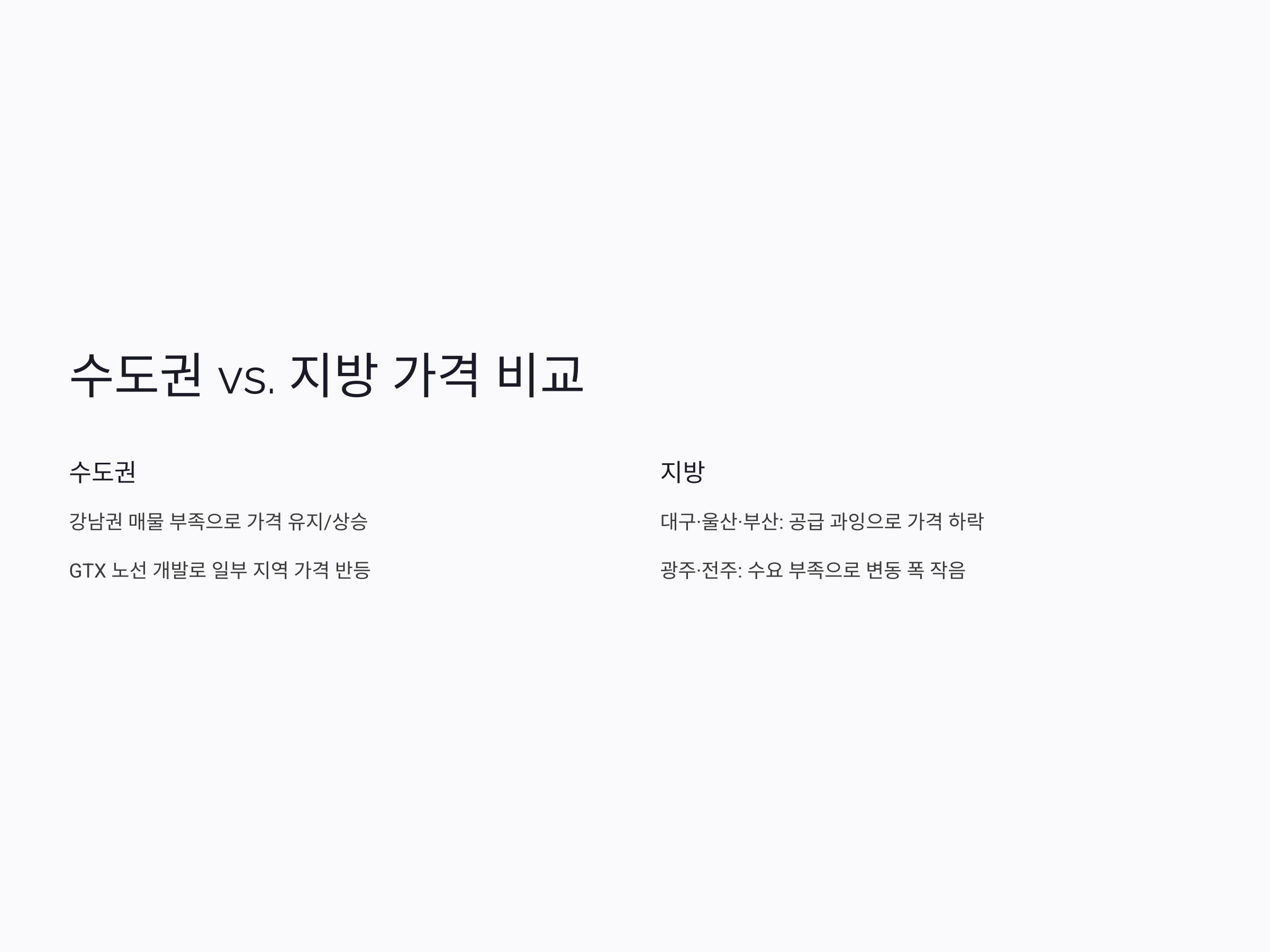 수도권 vs. 지방: 지역별 가격 변동 비교