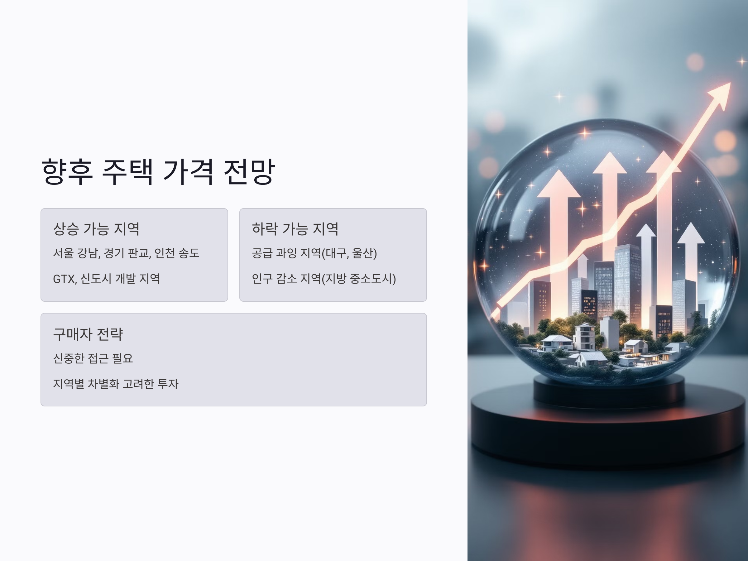 - 지역별 차별화 전략: 상승 가능성이 높은 지역에 집중