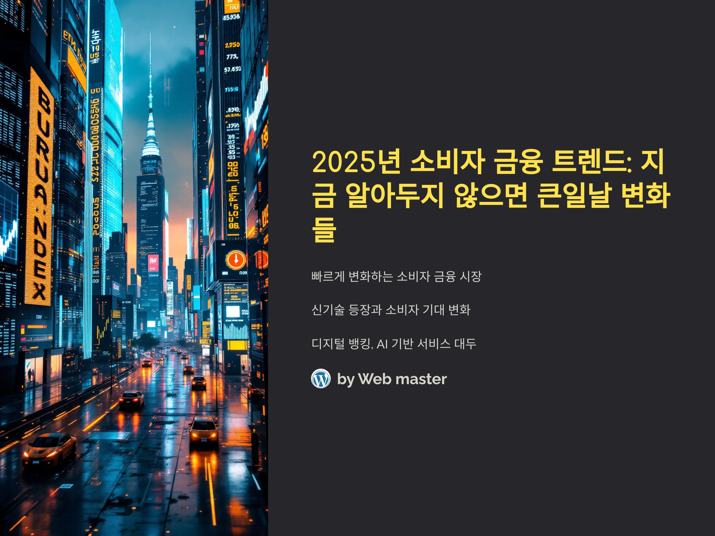 2025년 소비자 금융 시장은 이미 변화를 시작했고, 그 속도는 더욱 빨라질 것입니다. 디지털화된 서비스, AI 기반의 맞춤형 서비스, ESG 투자 등의 트렌드를 따라가지 않으면 경쟁에서 뒤처질 수 있습니다. 이 트렌드를 잘 활용하면 소비자들의 신뢰를 얻고, 더 큰 성공을 거둘 수 있을 것입니
