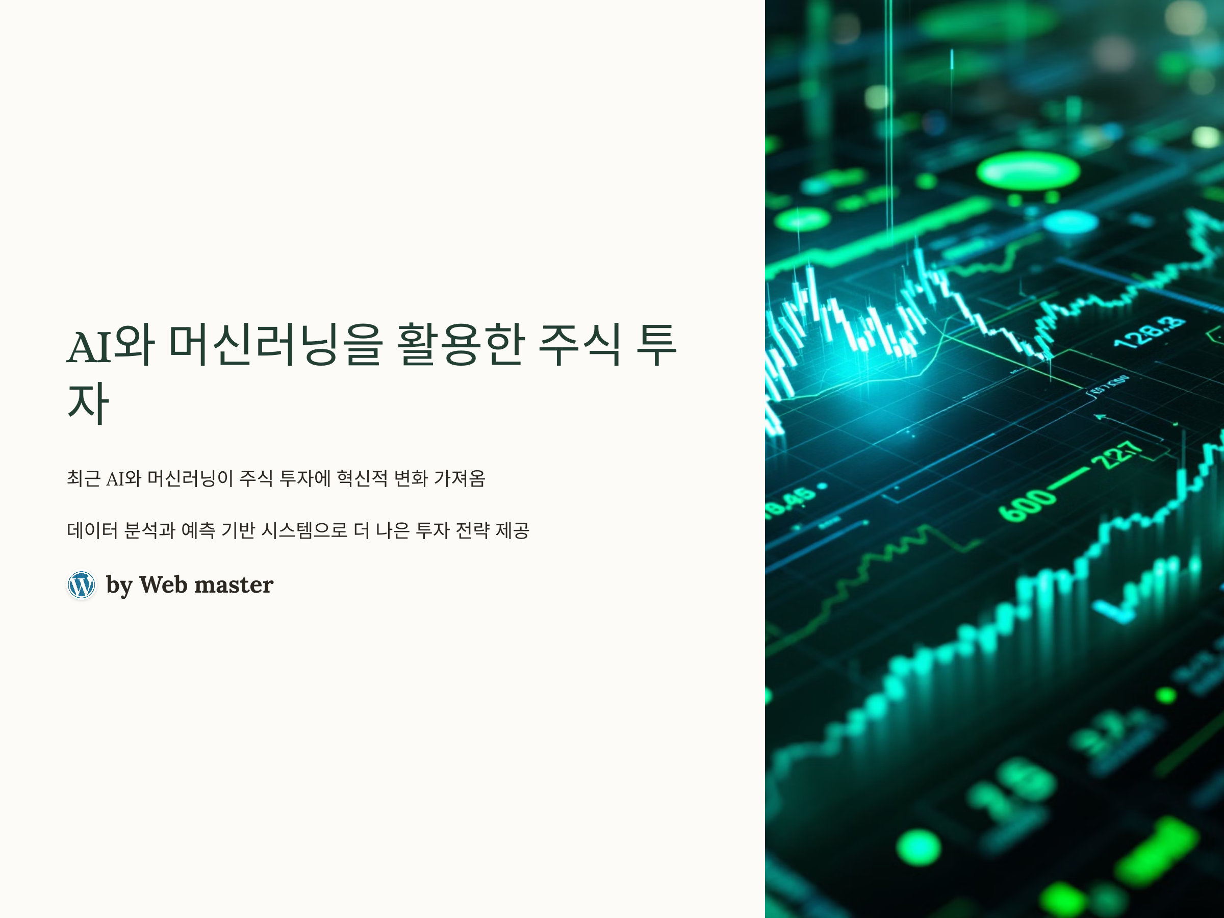 최근 몇 년간 AI(인공지능)와 머신러닝(ML)이 금융 분야, 특히 주식 투자에서 혁신적인 변화를 가져왔습니다. 기존의 투자 방식에서 벗어나 데이터 분석과 예측을 기반으로 한 시스템들이 등장하며, 투자자들에게 더 나은 투자 전략을 제공하고 있습니다. 이 글에서는 AI와 머신러닝을 활용한 주식 투자 방법, 이들의 장점과 도입 시 고려해야 할 점들을 다뤄 보겠습니다. 특히, 투자에 있어 어떻게 AI와 머신러닝이 기존 방식을 뛰어넘어 더 나은 결과를 가져올 수 있는지 알아보겠습니다.