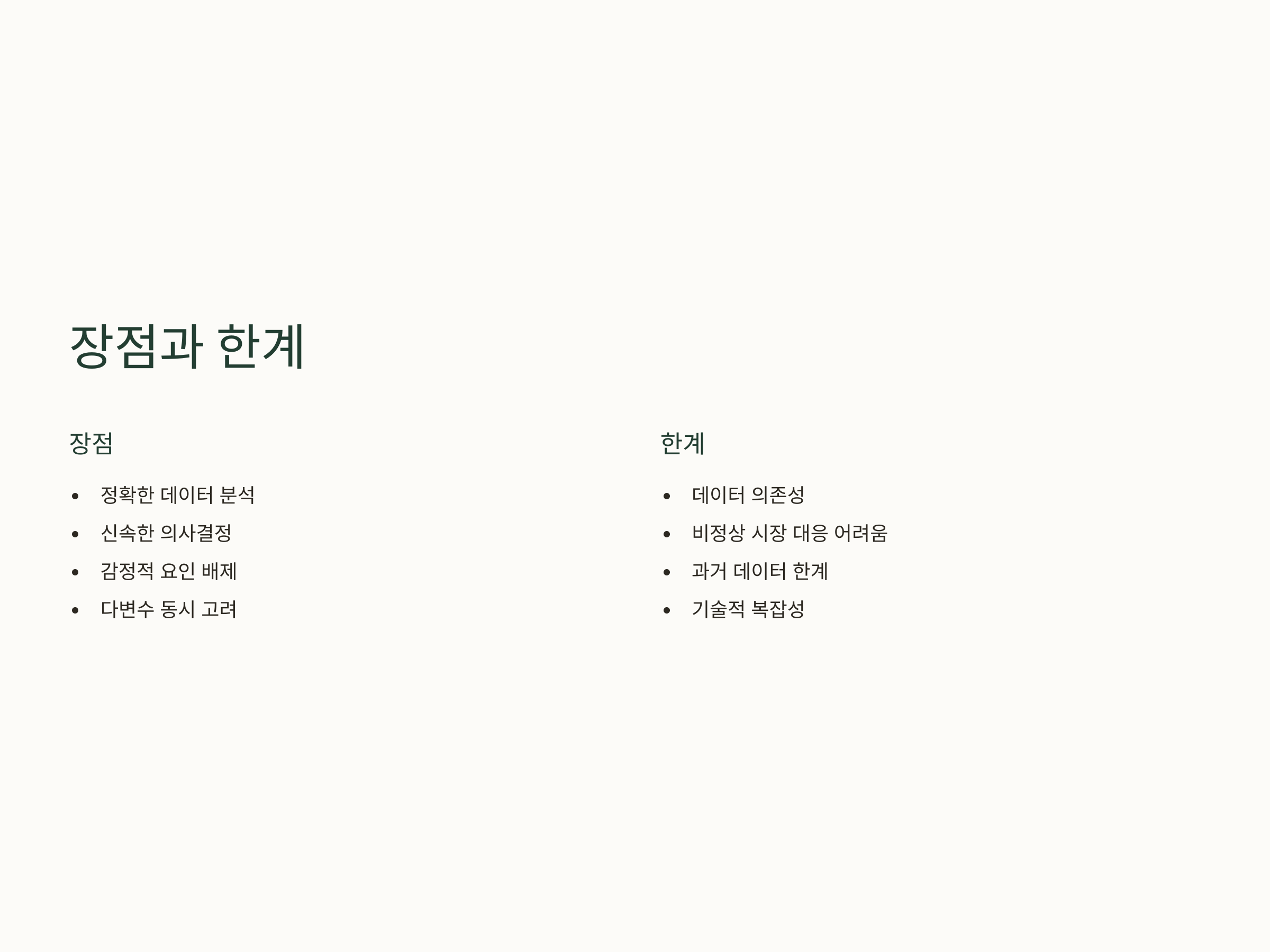하지만, AI와 머신러닝을 통한 주식 투자에도 한계가 존재합니다. 가장 큰 한계는 데이터 의존성입니다. 데이터의 정확성과 양이 부족하거나 부정확하면, AI 시스템이 잘못된 예측을 할 수 있습니다. 또한, 비정상적인 시장 상황에서는 AI 모델이 잘못된 결정을 내릴 수 있으며, 과거 데이터에 기반한 예측은 항상 미래의 상황을 정확히 반영하지 못할 수 있습니다.