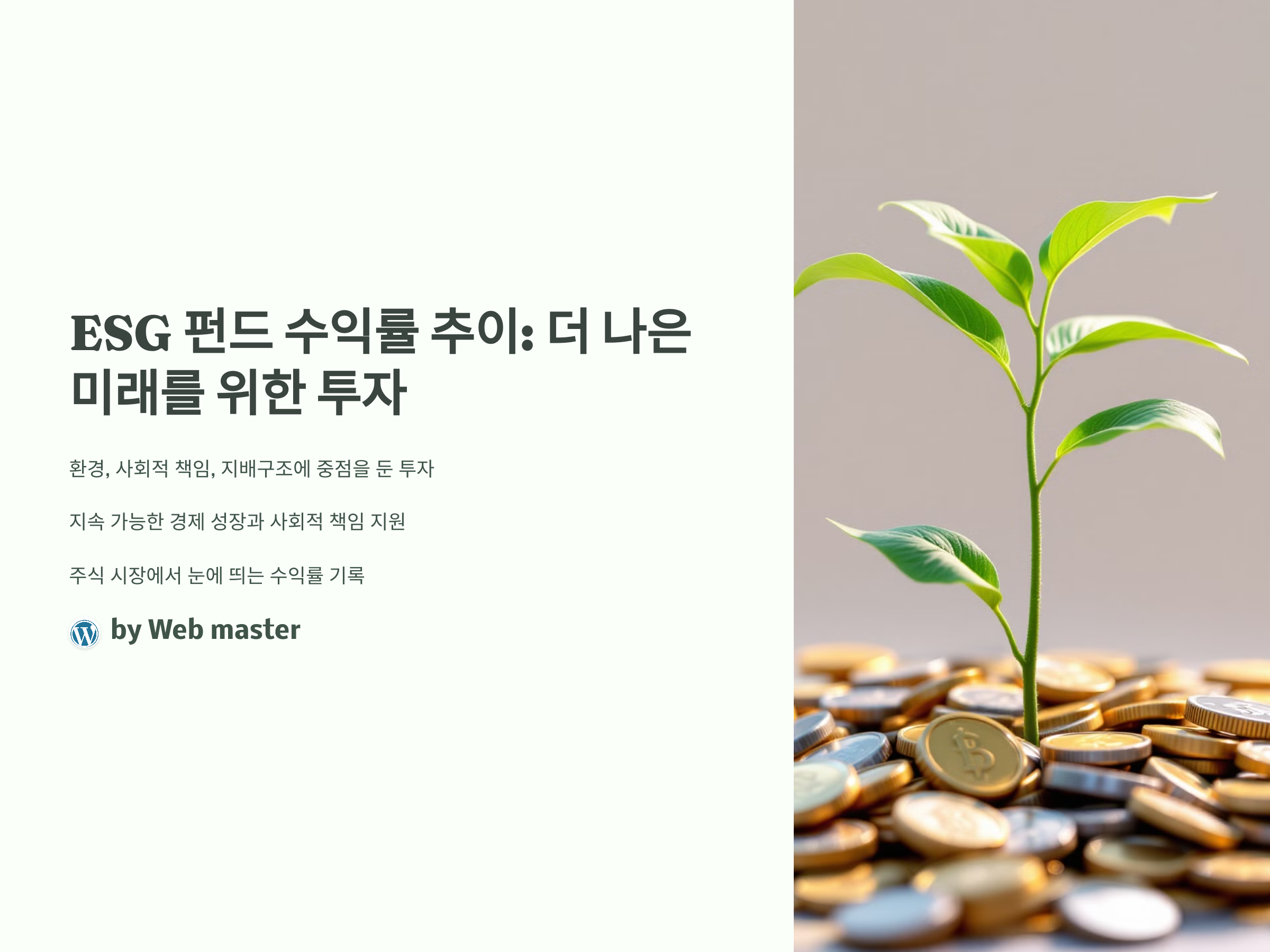 ESG 펀드는 최근 몇 년간 빠르게 성장하며 투자자들 사이에서 큰 주목을 받고 있습니다. 환경, 사회적 책임, 그리고 지배구조의 세 가지 요소에 중점을 두고 투자하는 ESG 펀드는 단순히 재정적 수익을 추구하는 것을 넘어, 지속 가능한 경제 성장과 사회적 책임을 다하는 기업을 지원하려는 목적을 가지고 있습니다. 이러한 ESG 투자 전략은 특히 주식 시장에서 눈에 띄는 수익률을 기록하고 있으며, 미래의 투자 방향을 엿볼 수 있는 중요한 지표로 자리잡고 있습니다. 이 글에서는 ESG 펀드의 수익률 추이를 분석하고, 향후 전망에 대해 살펴보겠습니다.