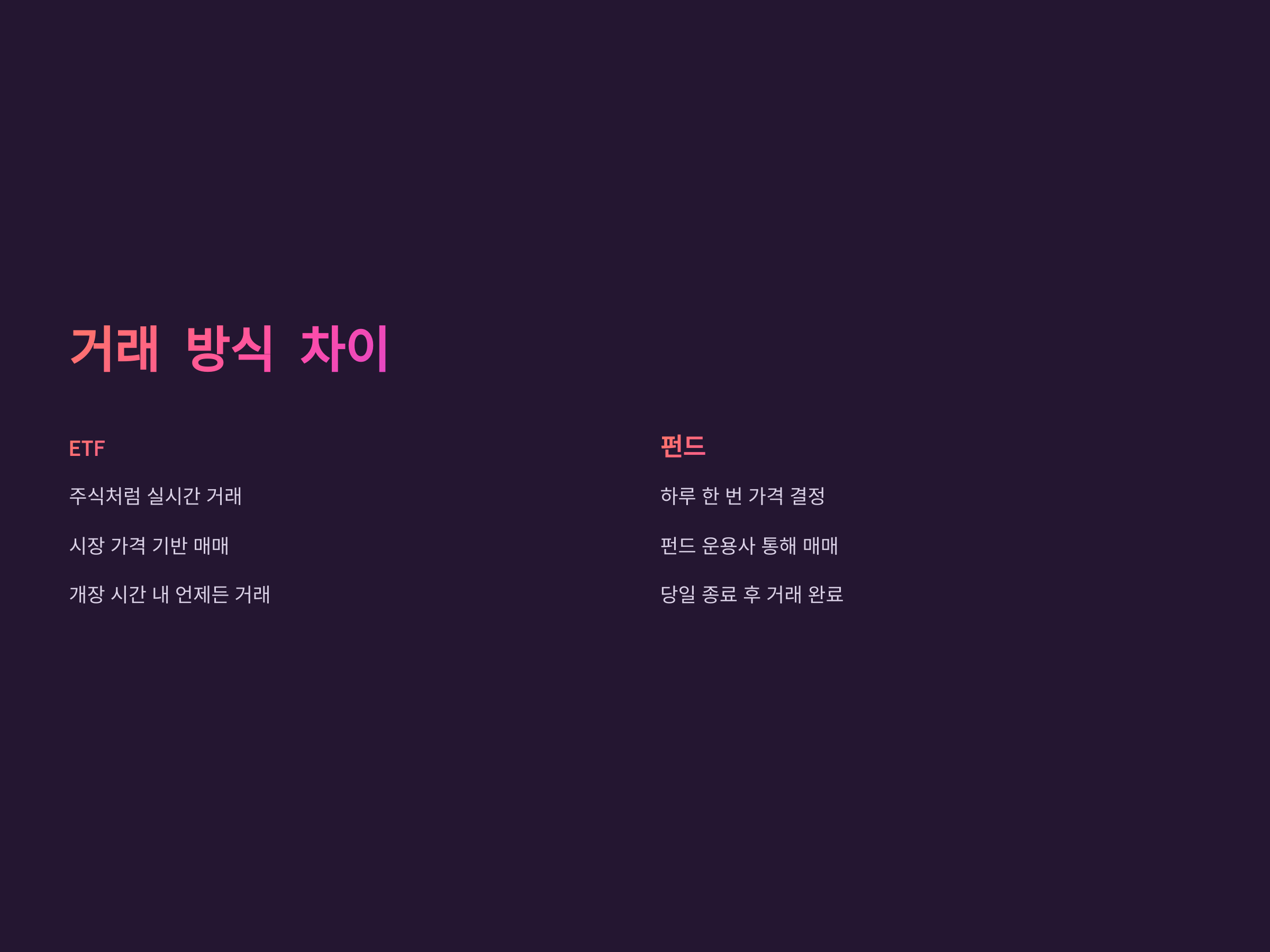 ETF와 펀드의 거래 방식 차이