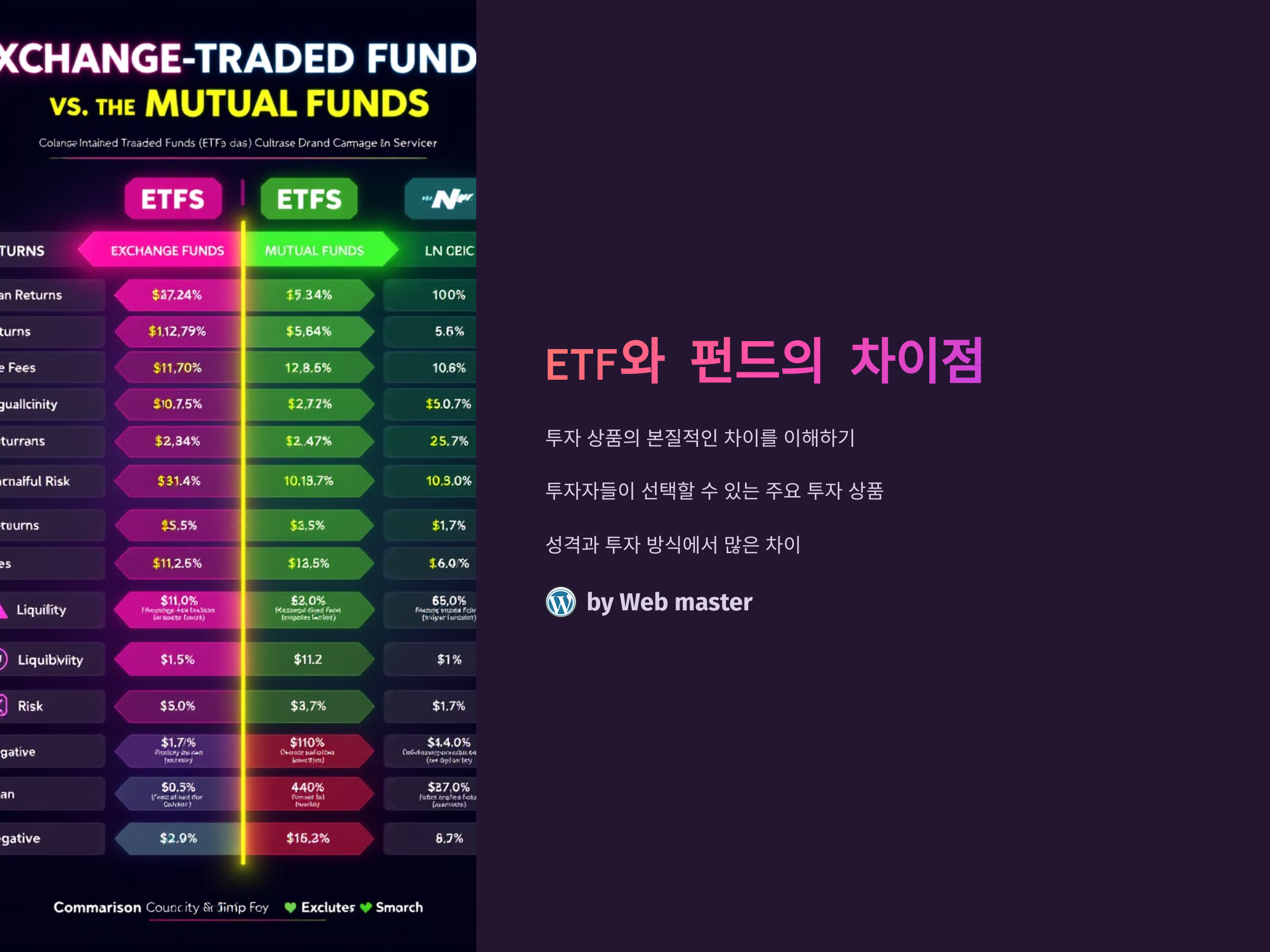 반면, 전통적인 펀드는 관리 수수료가 상대적으로 높습니다. 전문가들이 직접 자산을 운용하는 방식이라, 그만큼 운용에 드는 비용이 큽니다. 특히 적극적인 운용을 하는 액티브 펀드는 ETF보다 높은 수수료를 부과할 수 있으며, 이는 장기 투자자에게 비용 부담이 될 수 있습니다.