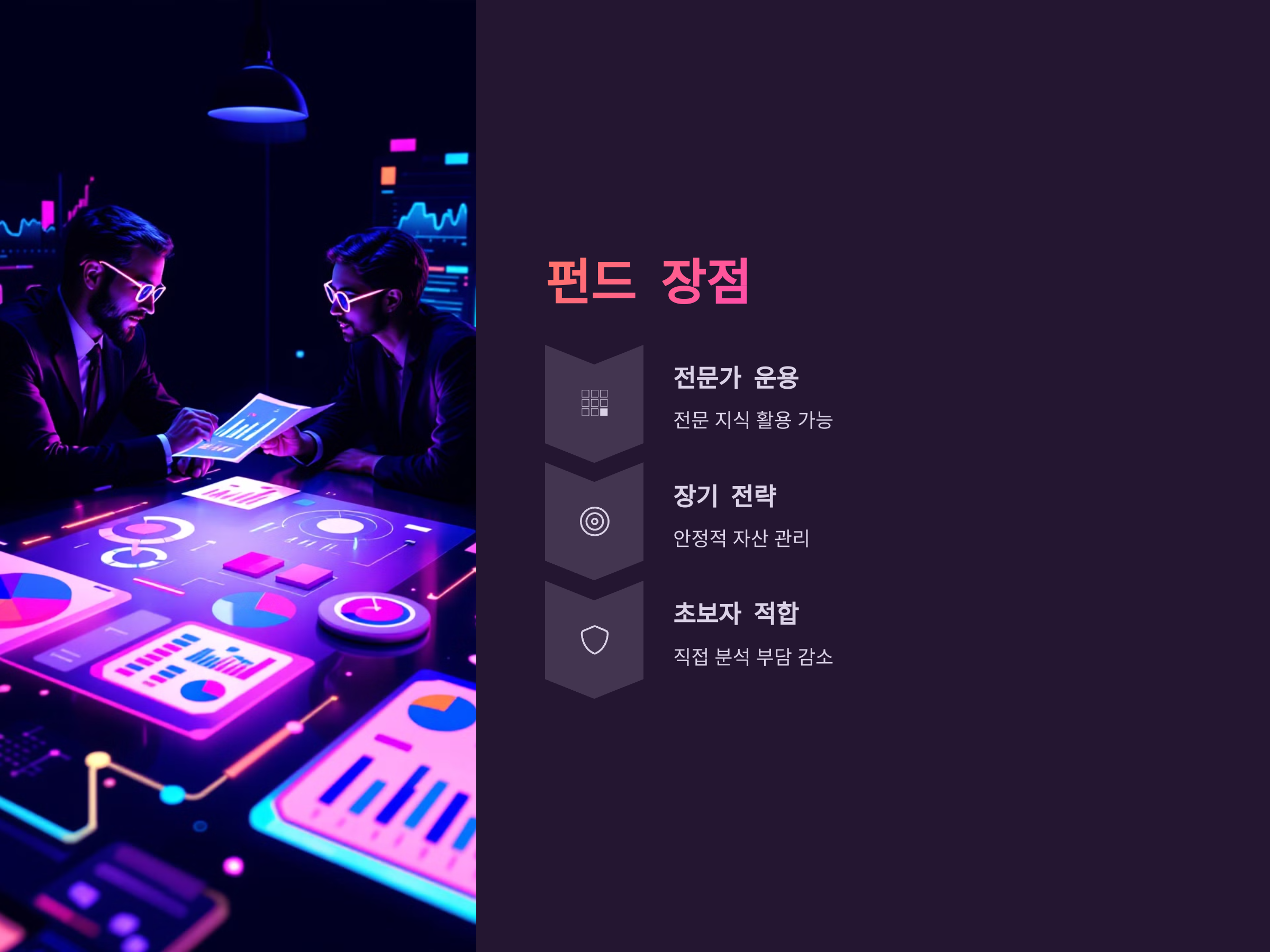 반면, 전통적인 펀드는 전문가에게 자산 운용을 맡기고 장기적인 투자 전략을 구상하는 데 유리합니다. 따라서 시간적 여유가 없거나, 자산 배분을 전문가에게 맡기고 싶은 투자자에게 적합합니다. 또한, 시장을 직접 분석하기 어려운 초보 투자자들에게 안정적인 투자처로 추천될 수 있습니다.