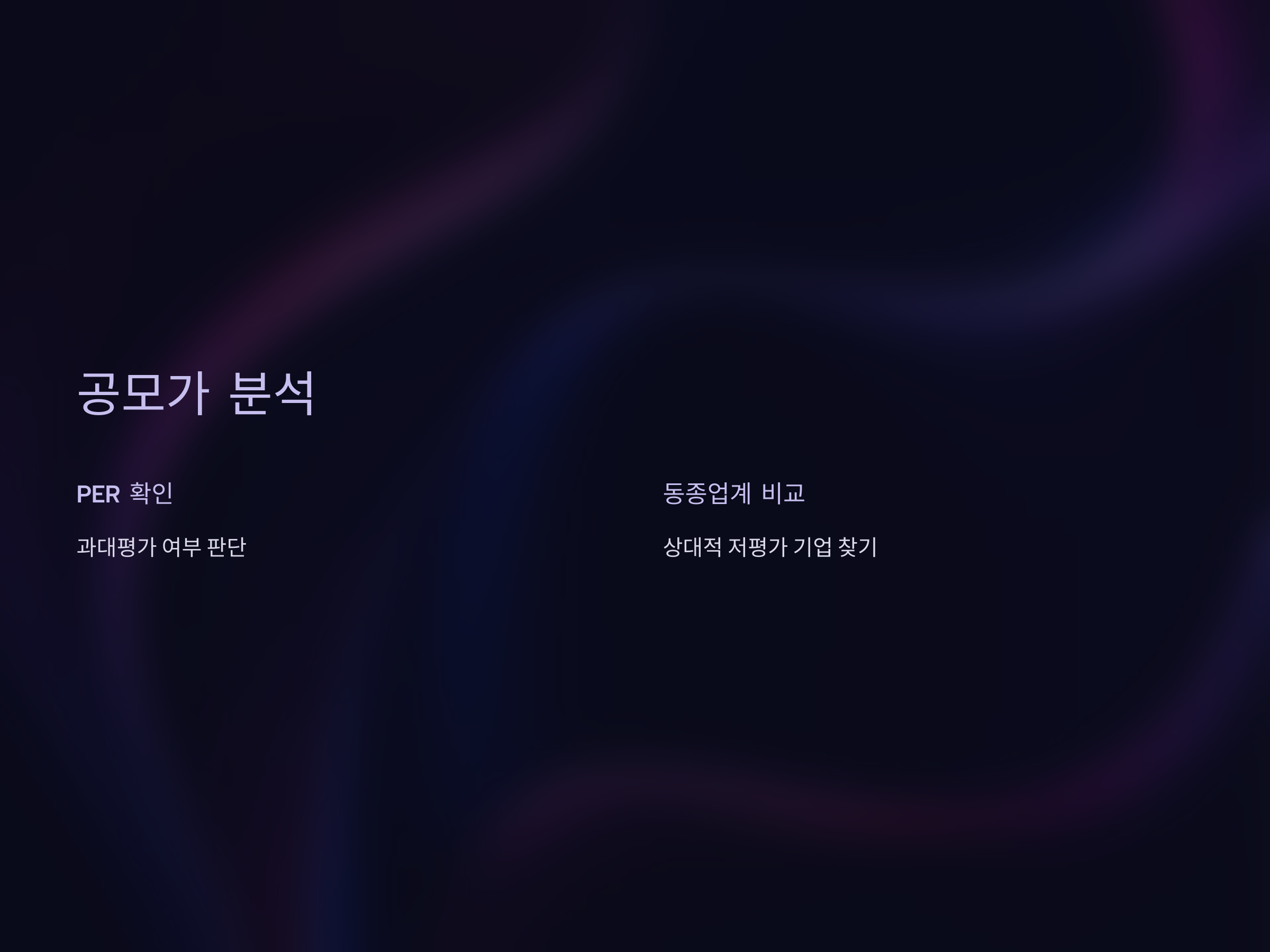 - 주가수익비율(PER): 기업의 PER(주가수익비율)을 살펴보면 공모가가 적정한지 판단할 수 있습니다. PER이 너무 높다면 시장에서 과대평가된 기업일 수 있습니다.