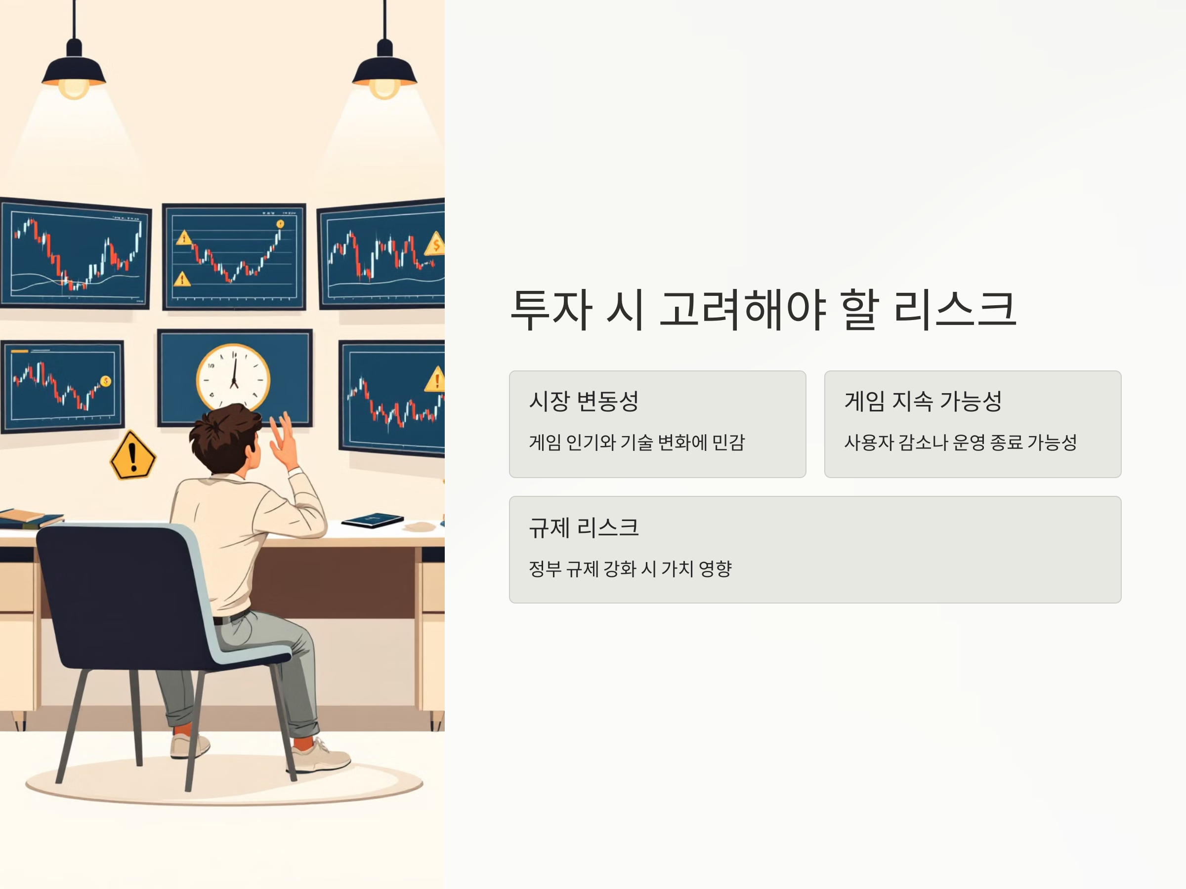 P2E 코인에 투자할 때는 그만큼의 리스크도 존재합니다. 첫째, 시장 변동성입니다. P2E 코인의 가치는 게임의 인기와 블록체인 기술의 변화에 크게 의존하므로, 시장의 변동성에 민감하게 반응할 수밖에 없습니다. 또한, 게임의 지속 가능성이 중요한데, 일부 게임은 시간이 지나면서 사용자 수가 감소하거나 게임 운영이 종료되는 경우도 있기 때문입니다.