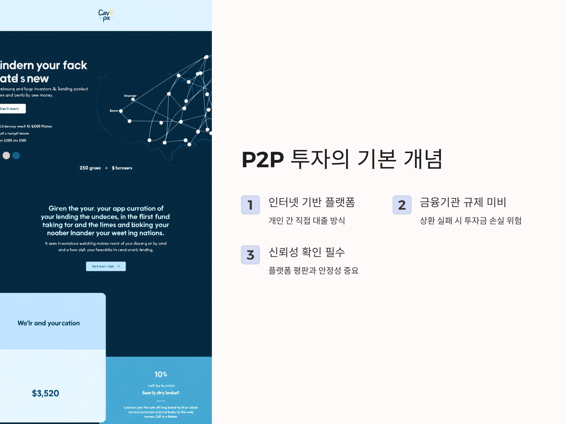 P2P 투자는 인터넷을 기반으로 한 플랫폼을 통해 이루어집니다. 투자자는 플랫폼에 가입하고 대출을 원하는 개인이나 기업에게 자금을 대여하는 방식입니다. 대출자는 필요 자금을 빠르게 조달할 수 있고, 투자자는 높은 수익을 기대할 수 있다는 점에서 매력적입니다. 하지만 그 이면에는 여러 가지 위험 요소가 존재합니다.