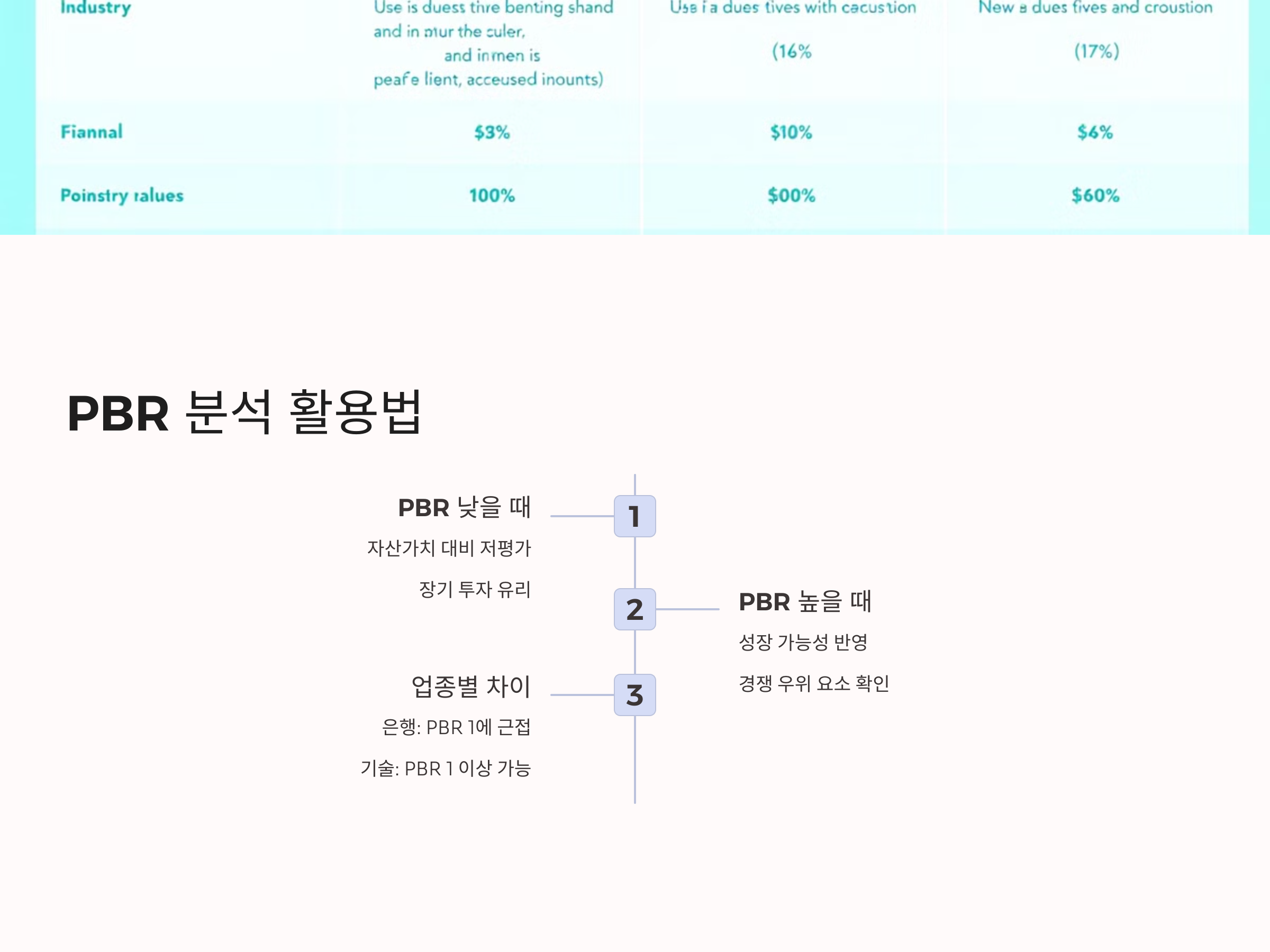 - PBR이 높을 때: PBR이 1보다 높다면, 기업의 자산에 비해 주가가 비싸다는 의미입니다. 하지만 이 경우에도 기업의 미래 성장 가능성이나 경쟁 우위가 반영된 주가일 수 있기 때문에, 단순히 PBR만으로 판단하는 것은 위험할 수 있습니다.