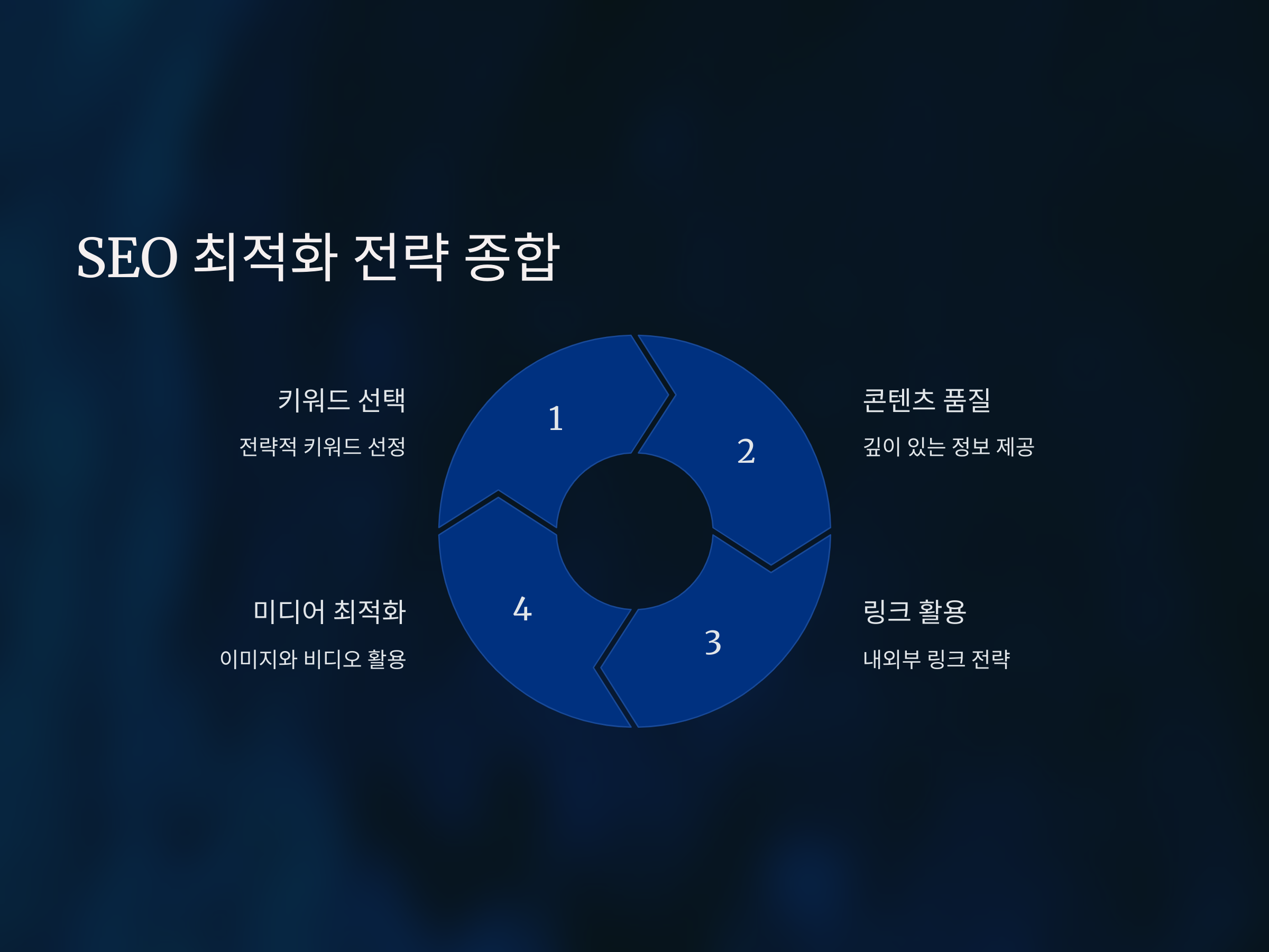 결국 SEO 최적화는 구체적인 키워드 선택, 콘텐츠 품질, 링크 활용, 이미지 및 미디어 활용 등 다양한 요소들이 종합적으로 어우러져야 합니다. 이러한 요소들을 잘 활용하면 블로그 글쓰기에서 큰 성공을 거둘 수 있습니다.