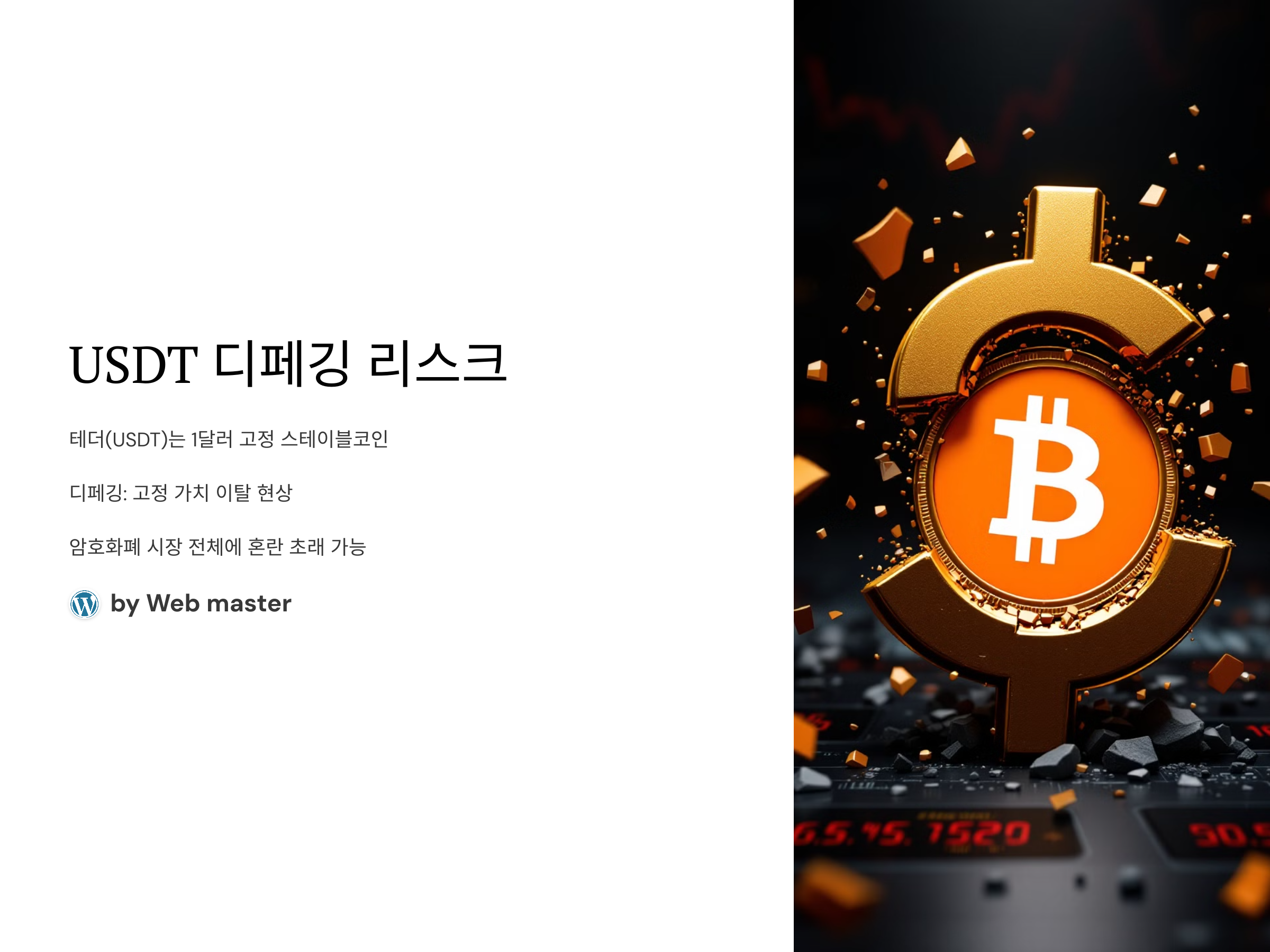 USDT(테더)는 암호화폐 시장에서 가장 인기 있는 스테이블코인 중 하나로, 그 가격이 1달러에 고정되도록 설계되었습니다. 그러나 최근 몇 년간, USDT와 같은 스테이블코인들은 다양한 리스크에 직면하고 있습니다. 특히, 테더의 디페깅(pegging 탈피) 문제는 암호화폐 시장의 큰 이슈로 떠오르고 있습니다. 이 포스팅에서는 USDT 디페깅 리스크와 이를 둘러싼 주요 이슈들을 살펴보겠습니다.